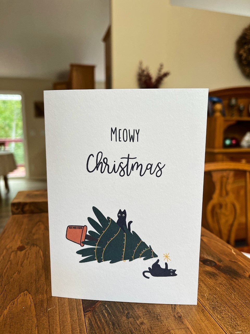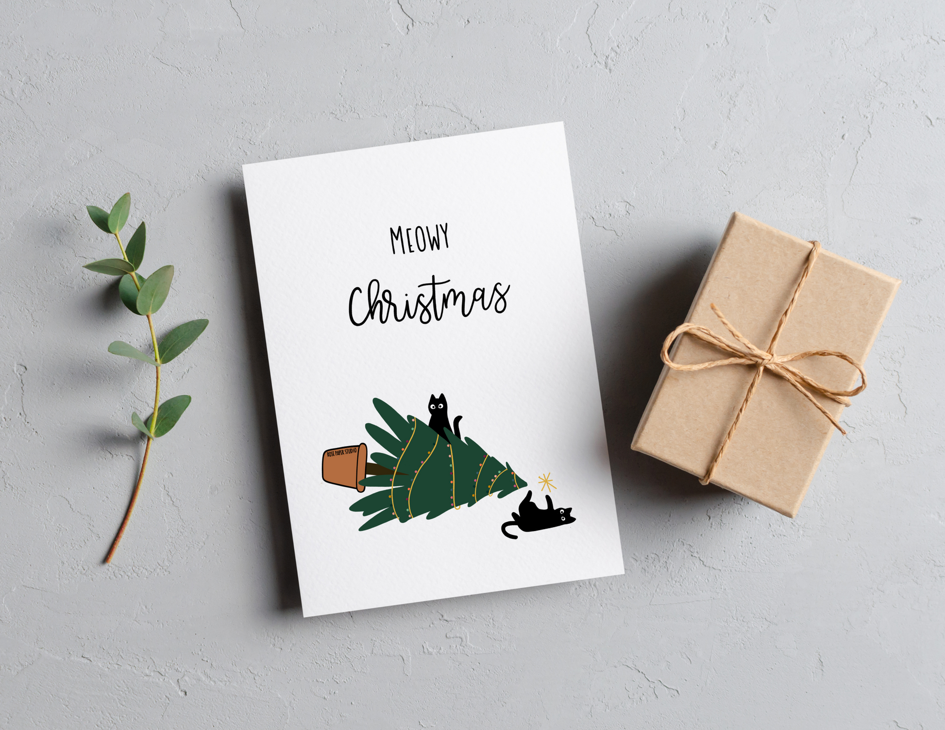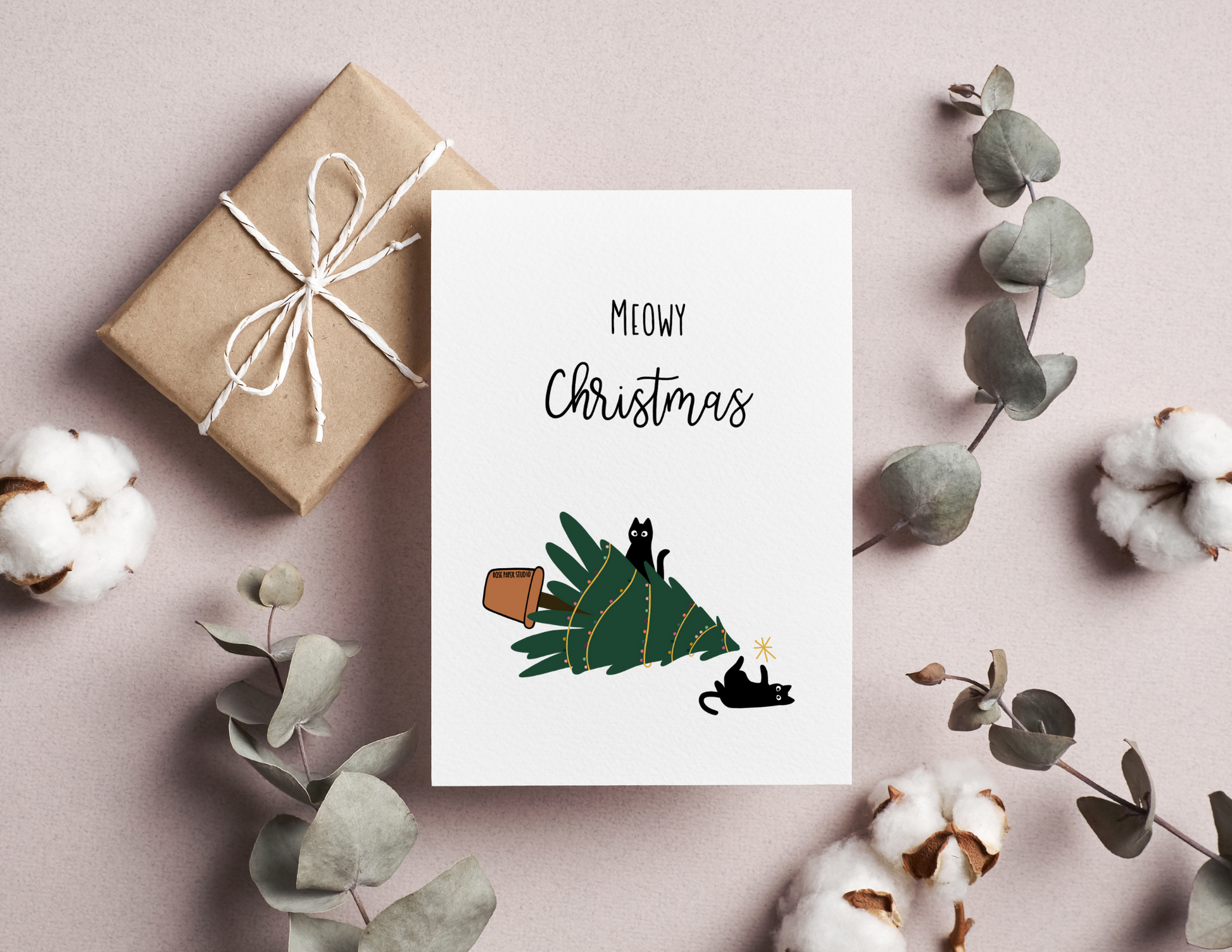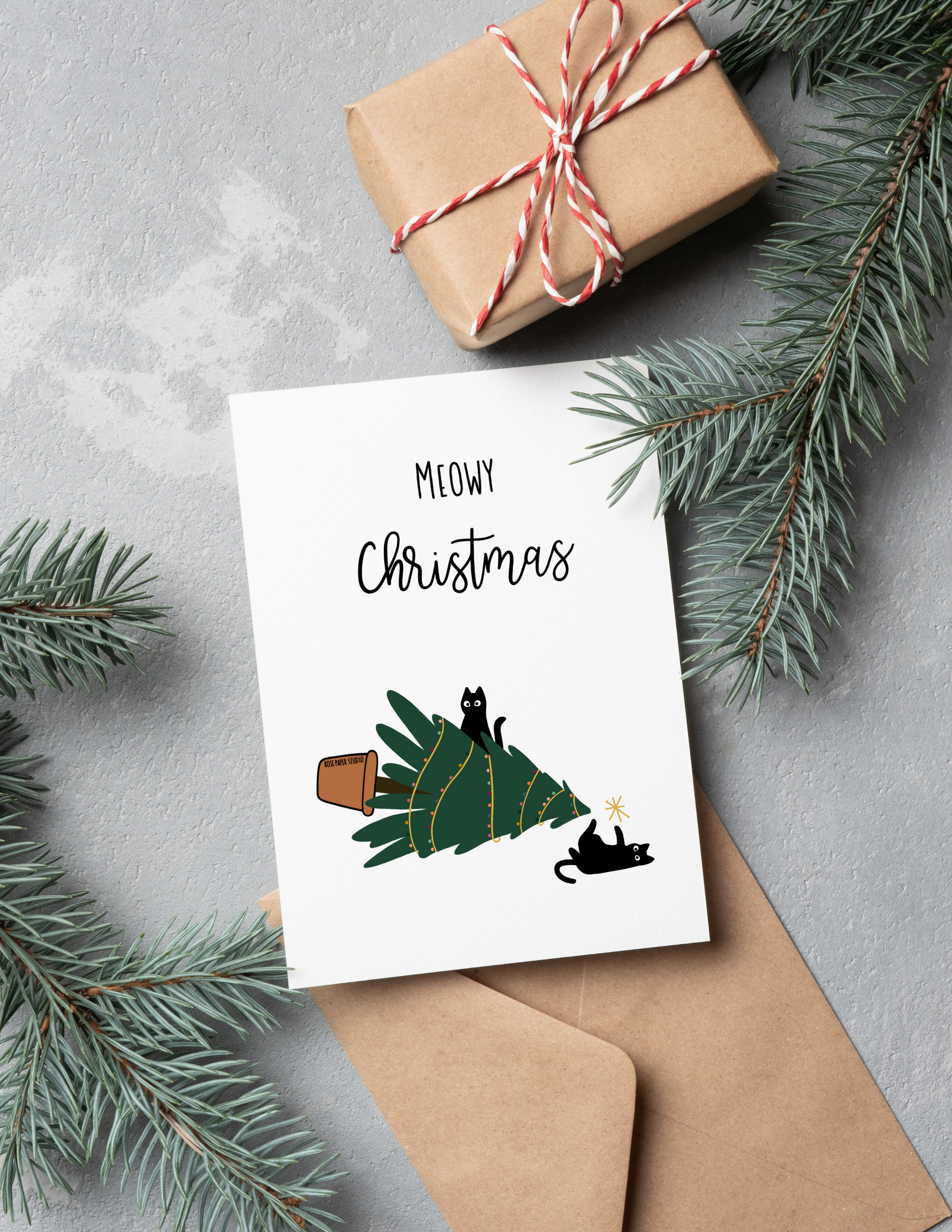 Meowy Christmas | Blank Calligraphy Greeting Card