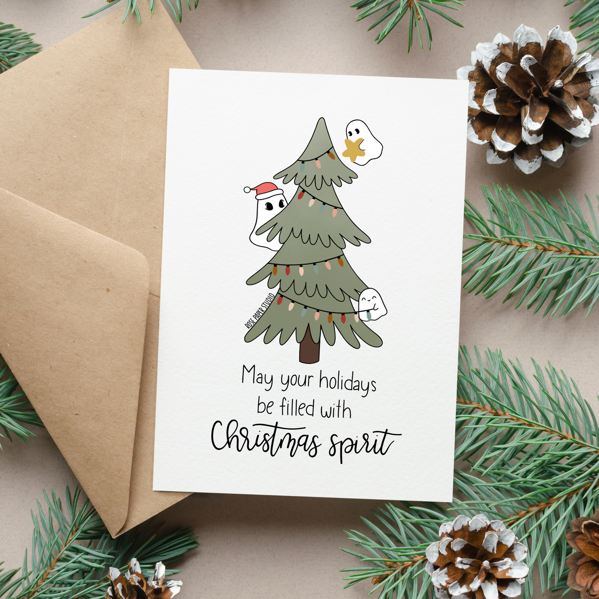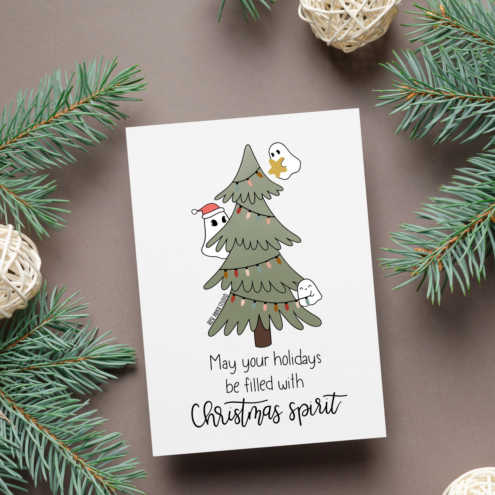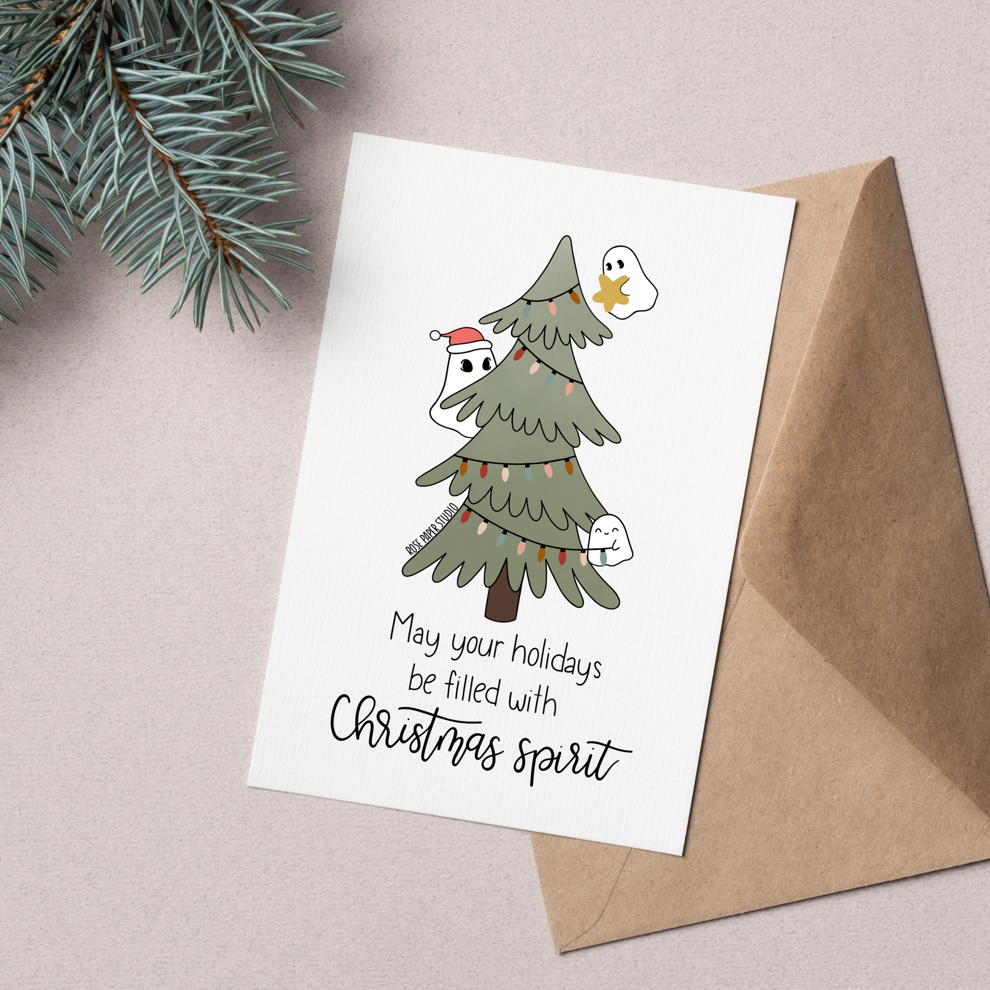 Christmas Spirit Card | Blank Modern Calligraphy Greeting Card