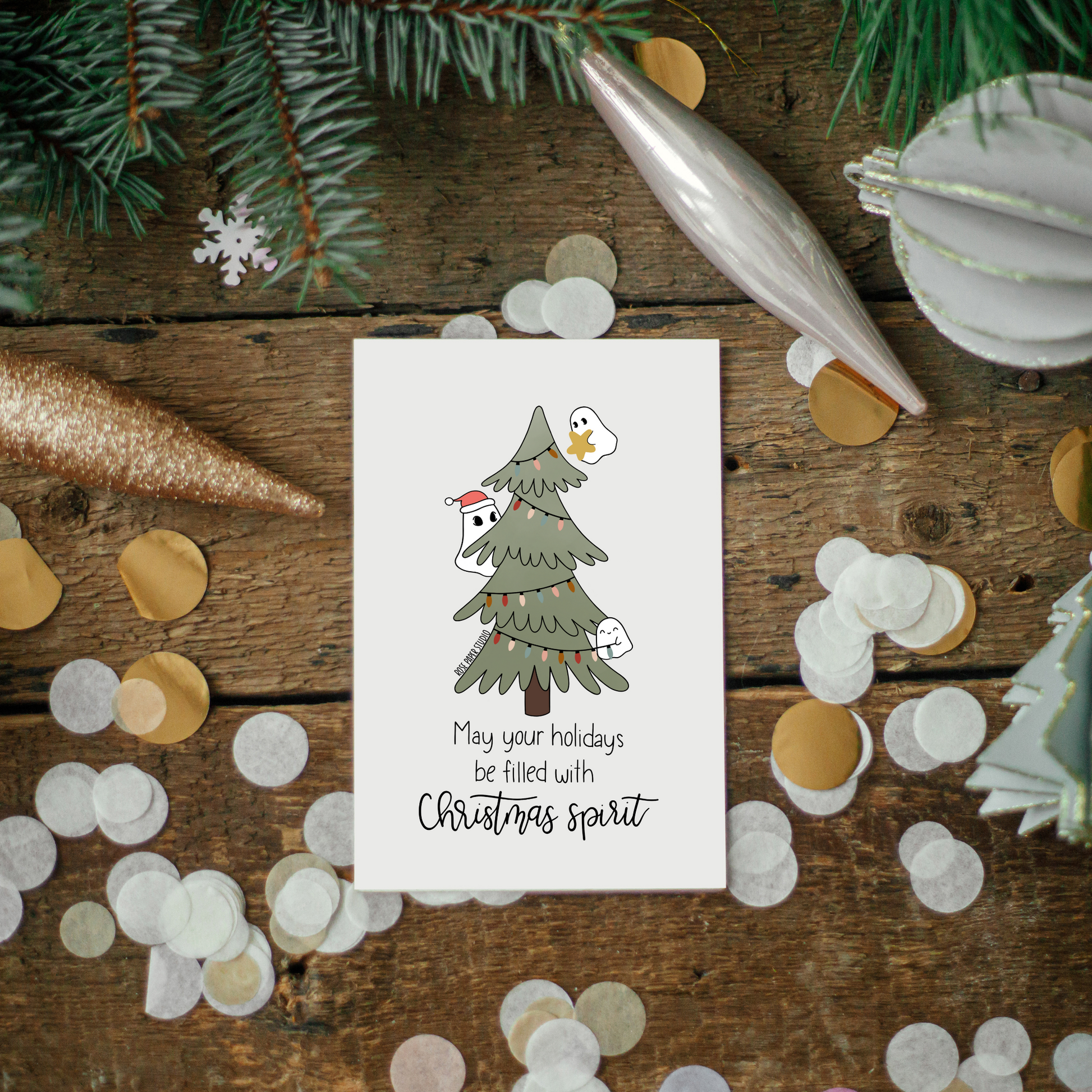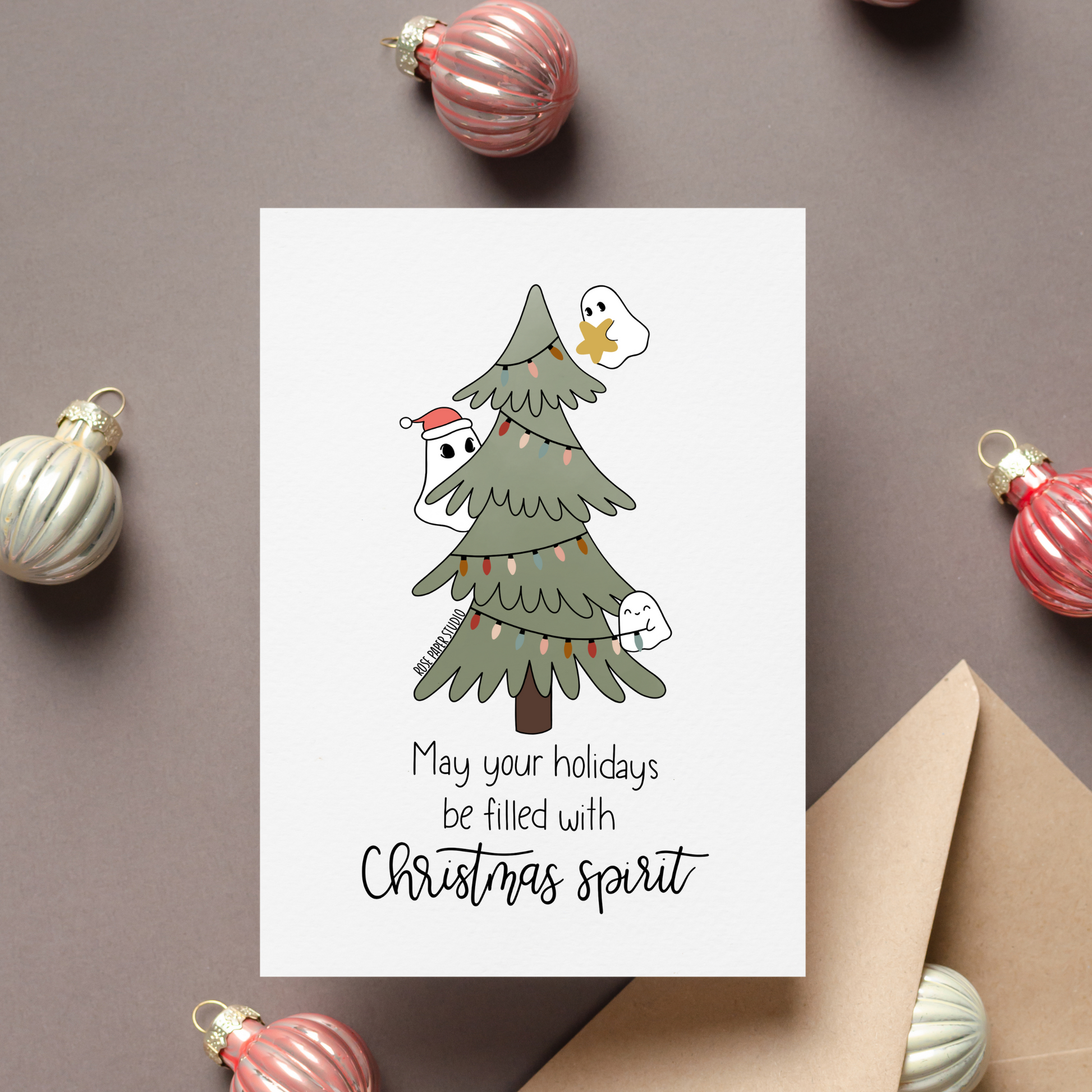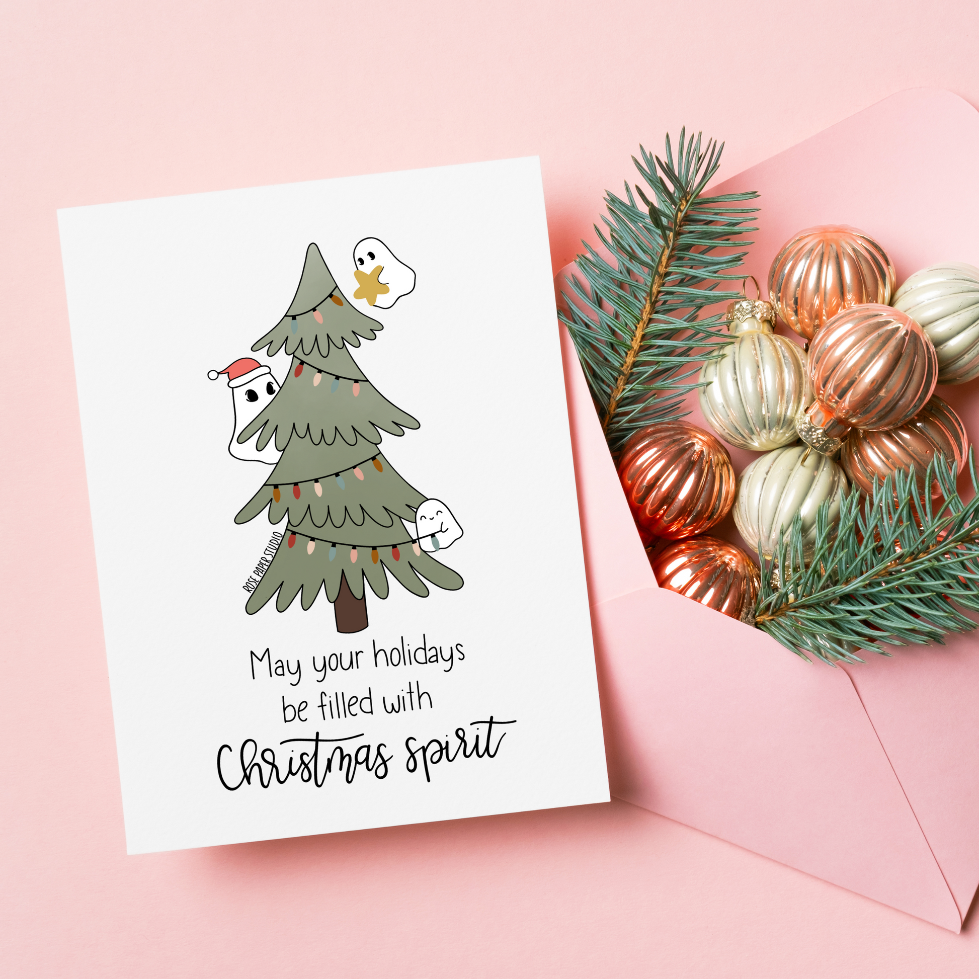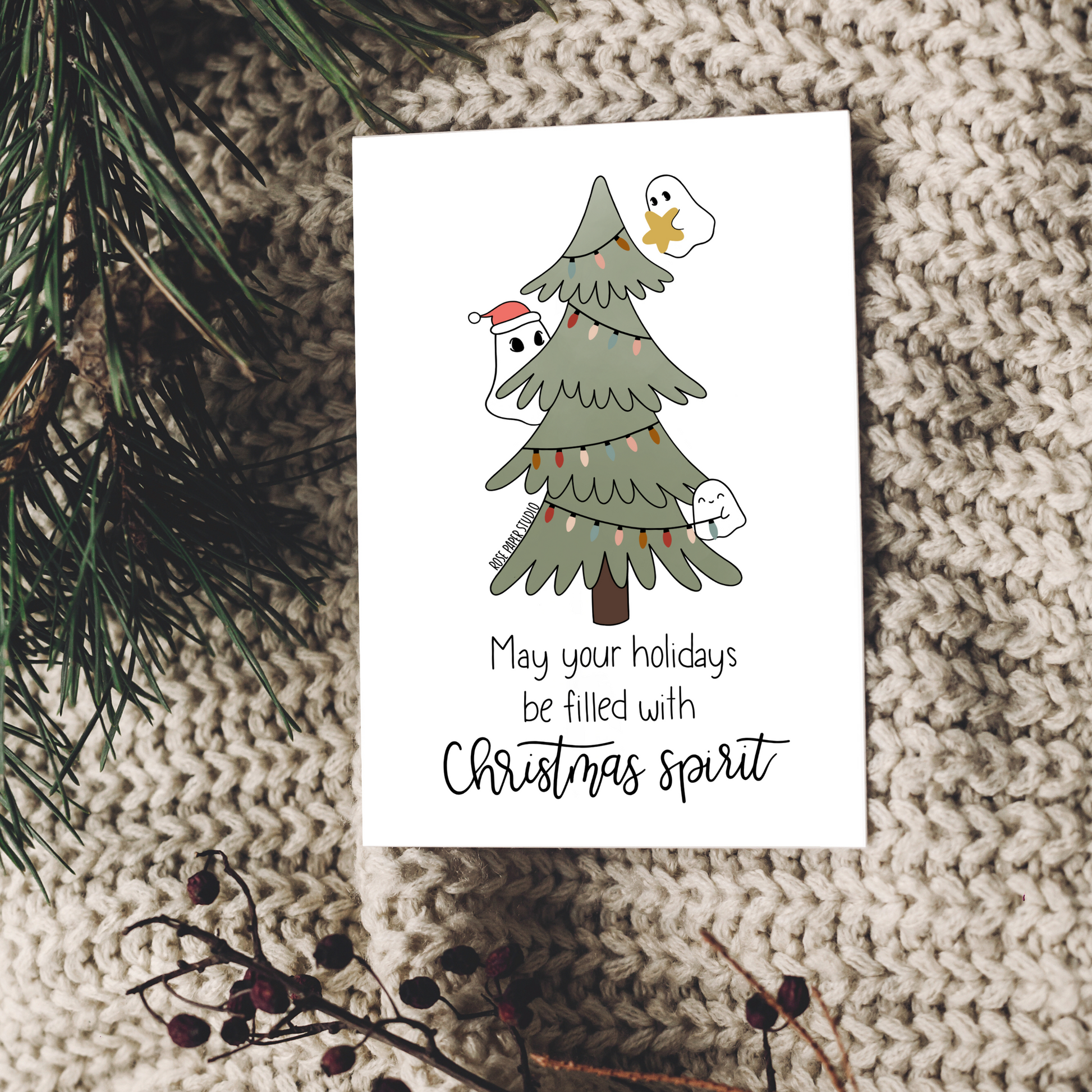 Christmas Spirit Card | Blank Modern Calligraphy Greeting Card