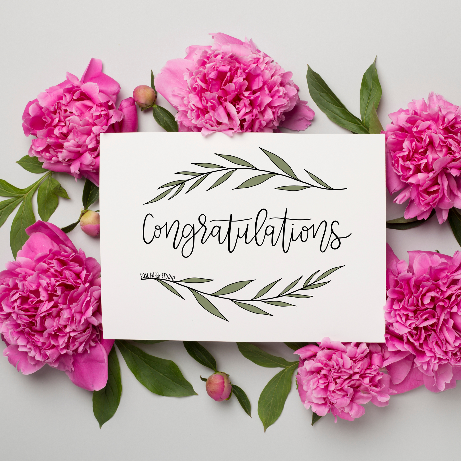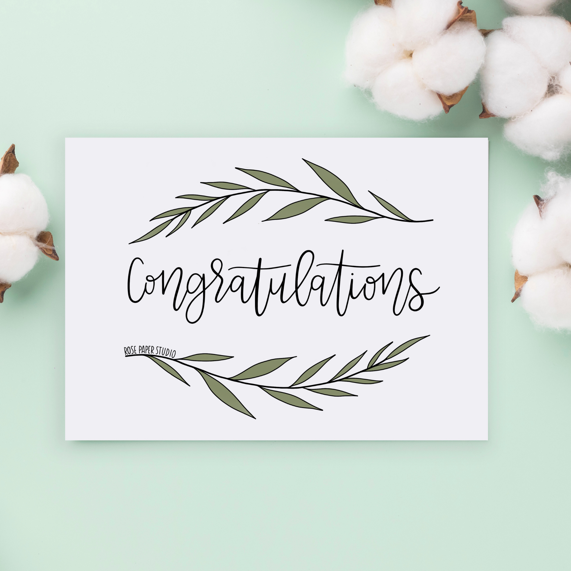 Congratulations Card | Botanical Greeting Card | Graduation Card | New Job Card | Cute Congrats Gift | Hand Drawn Modern Calligraphy Card