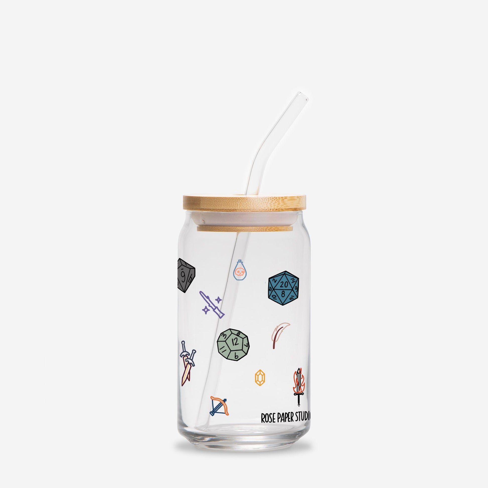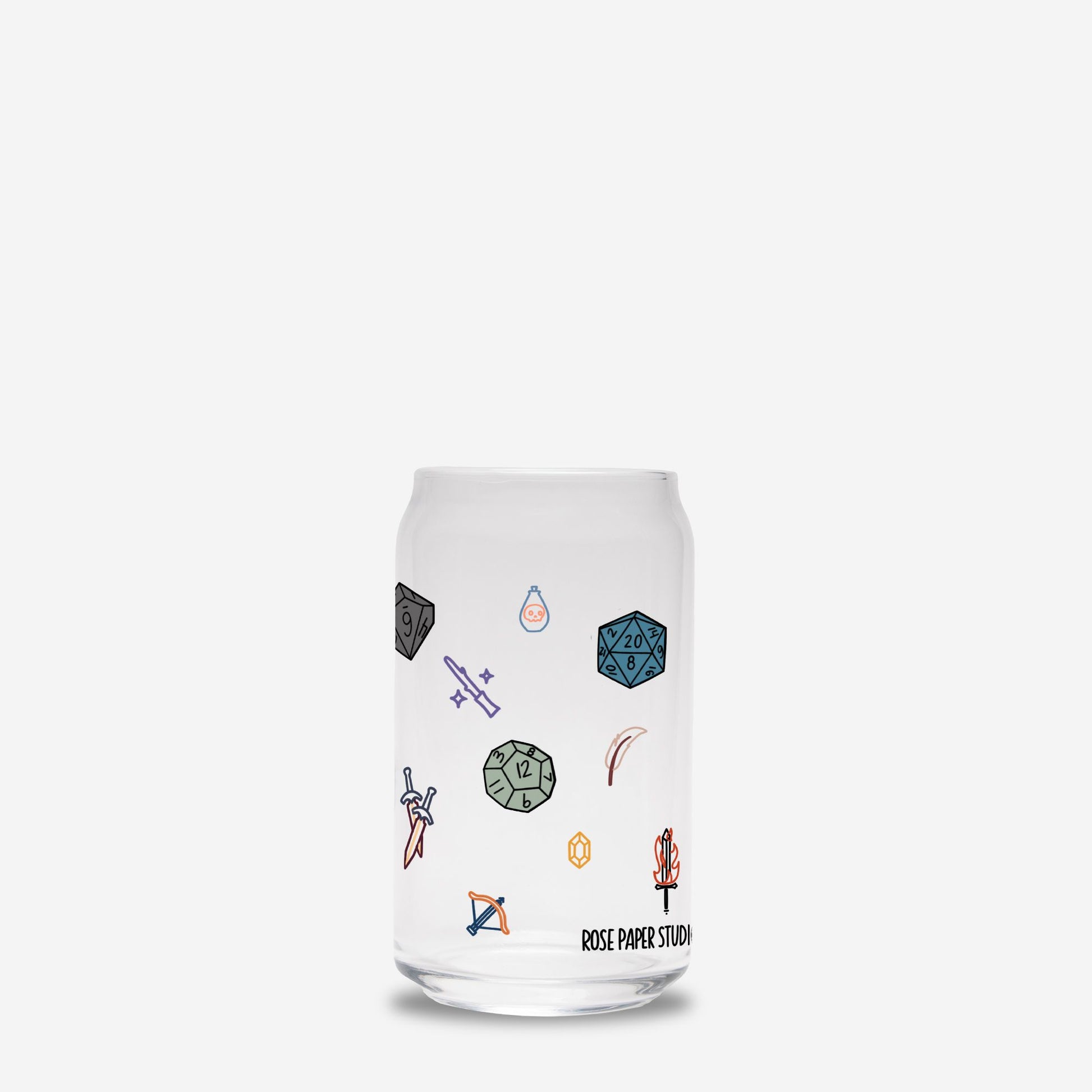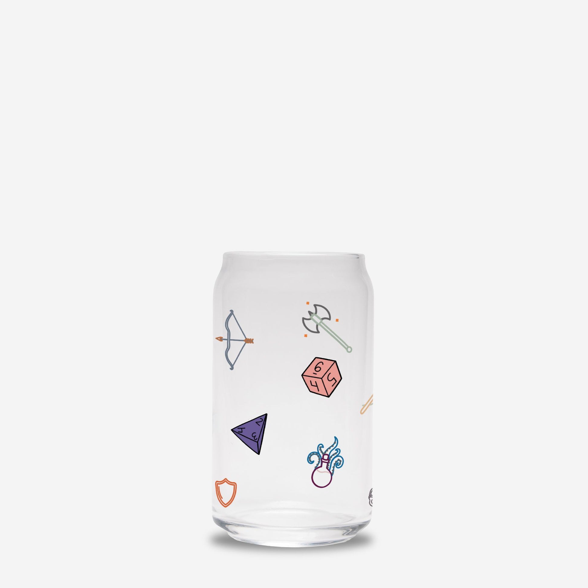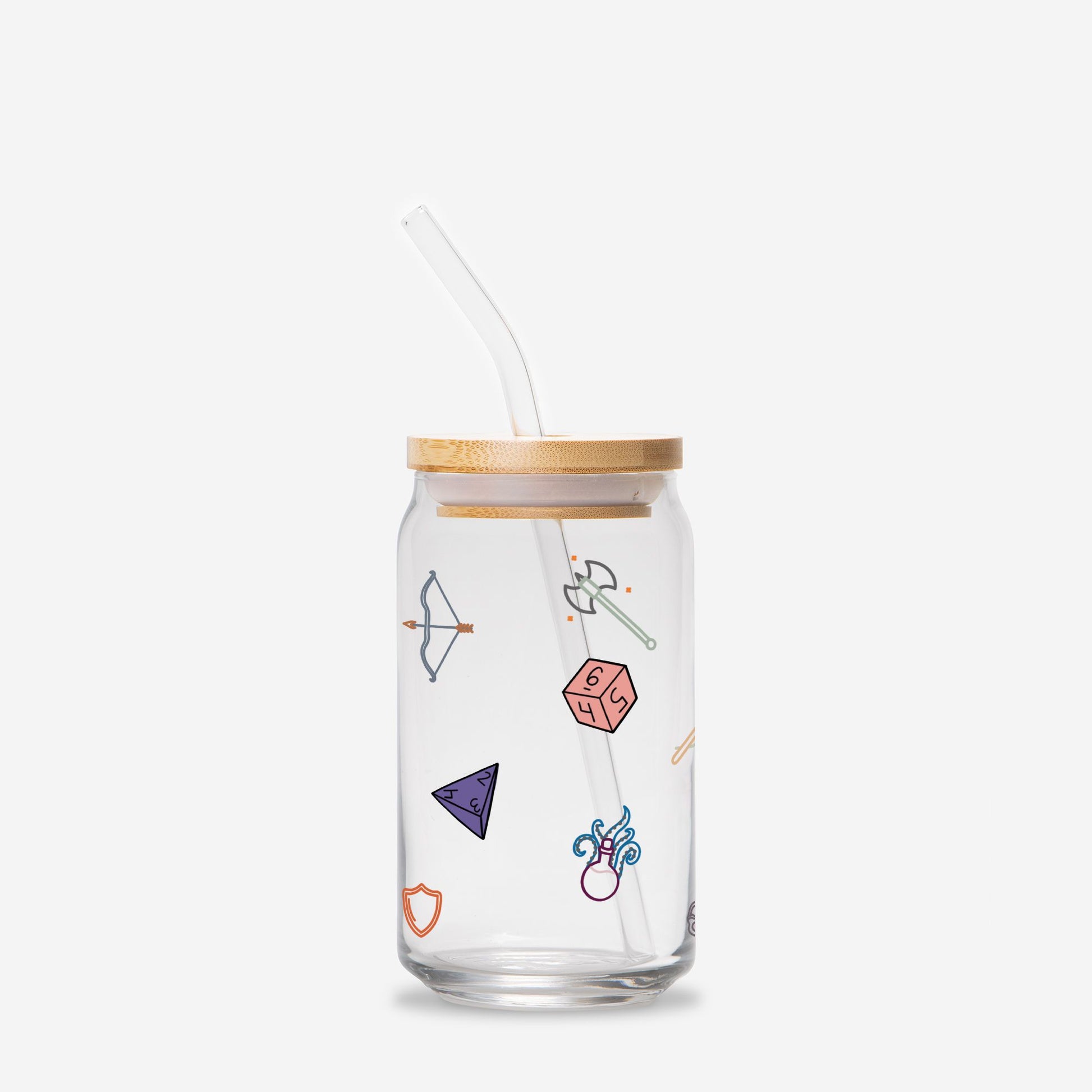 D&D Icons Glass Can Cup | 16oz | Cozy Drinkware| Iced Coffee Glass | Reusable Glass Tumbler | Cute Tea Cup | Hand Drawn Design
