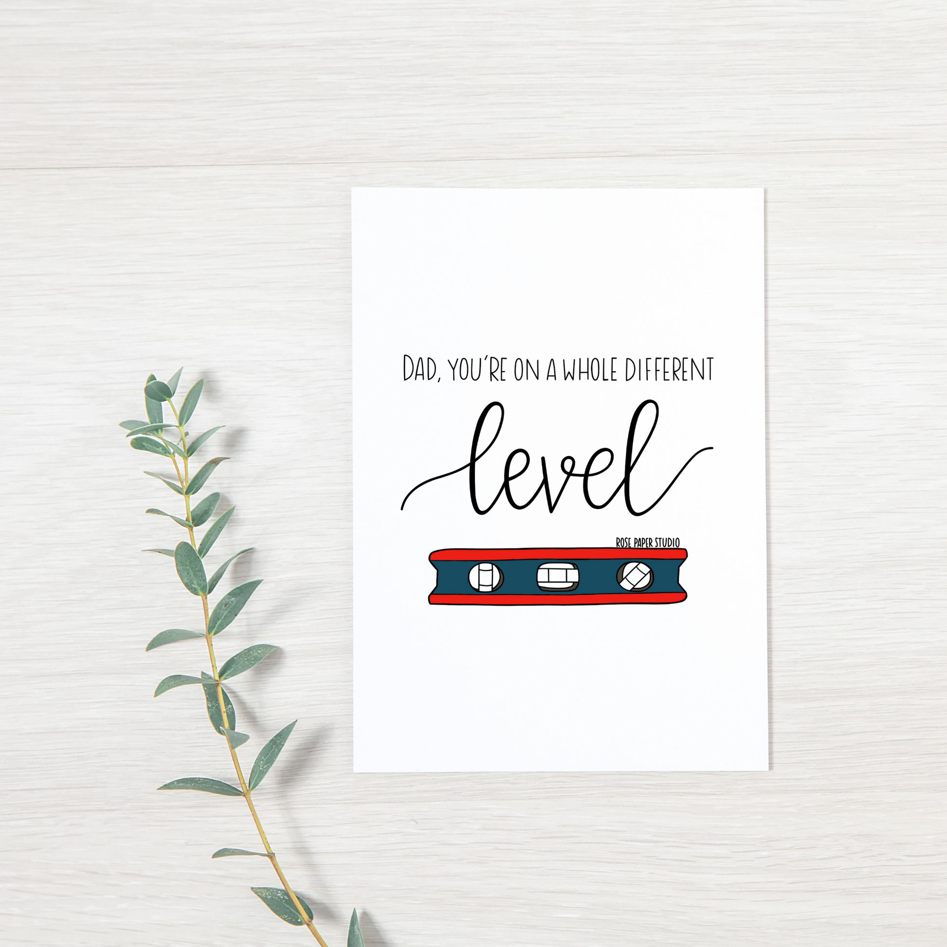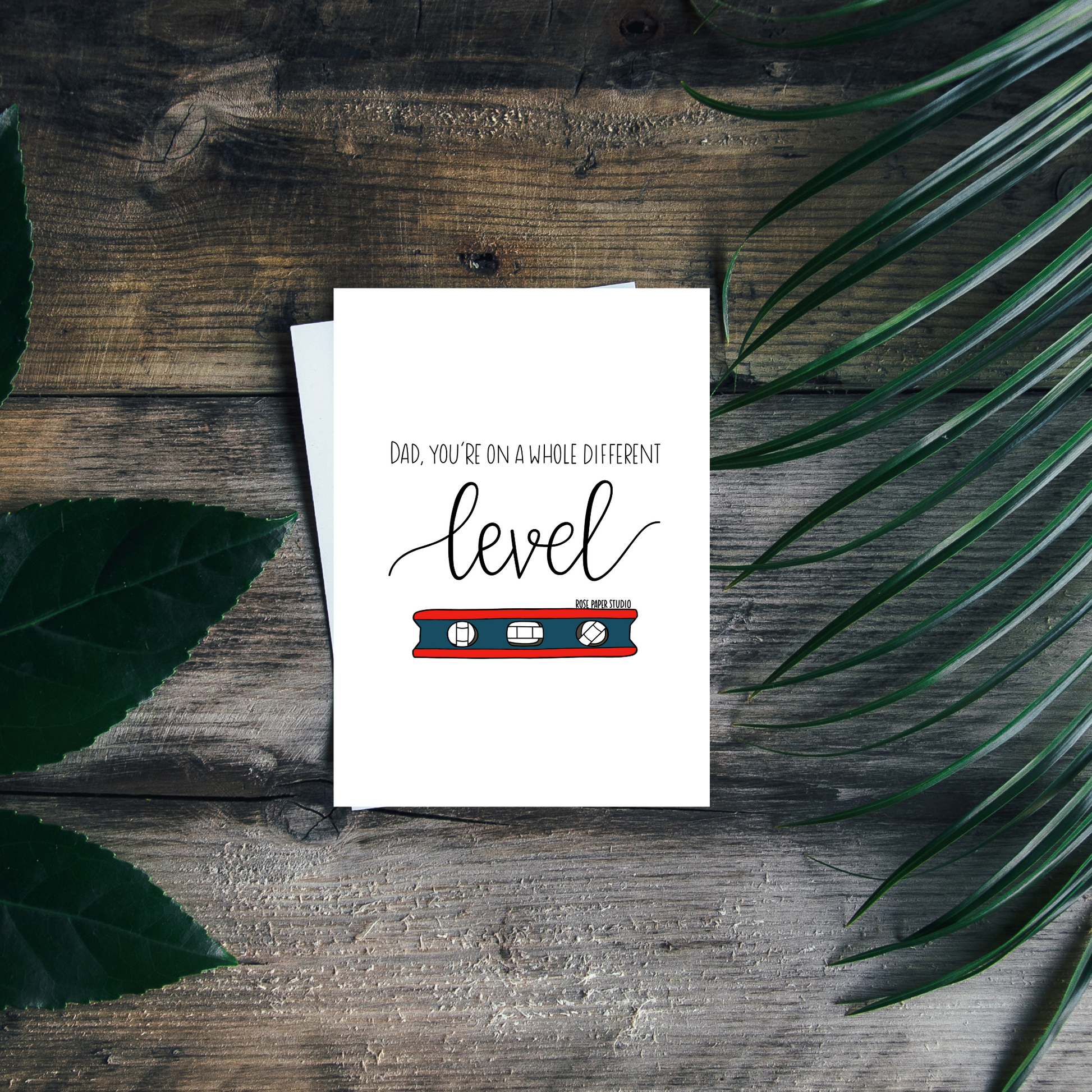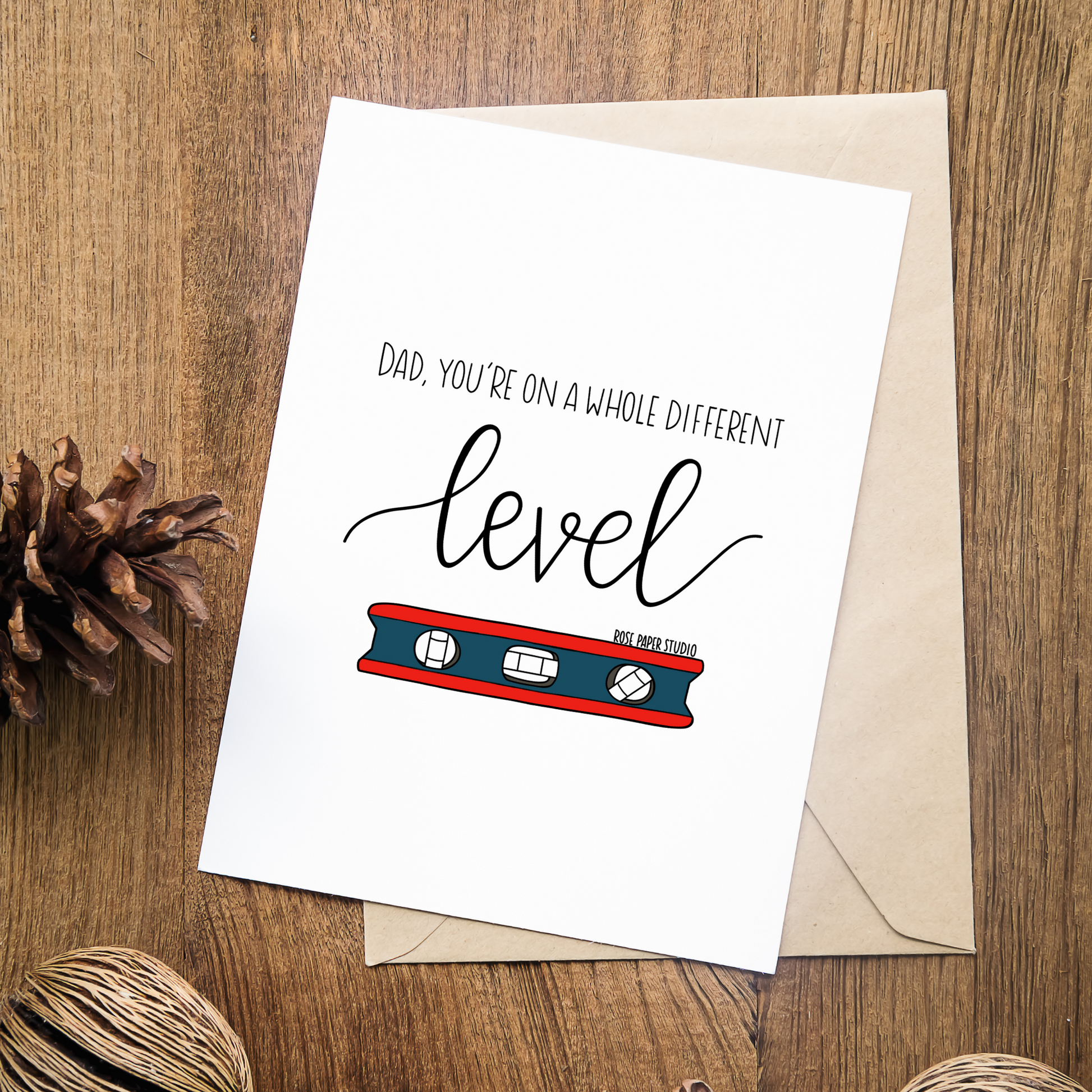 Dad, You're On A Whole Different Level Card | Father's Day Card | Tool Pun Card | Funny Father's Day Card | Hand Drawn Calligraphy Card