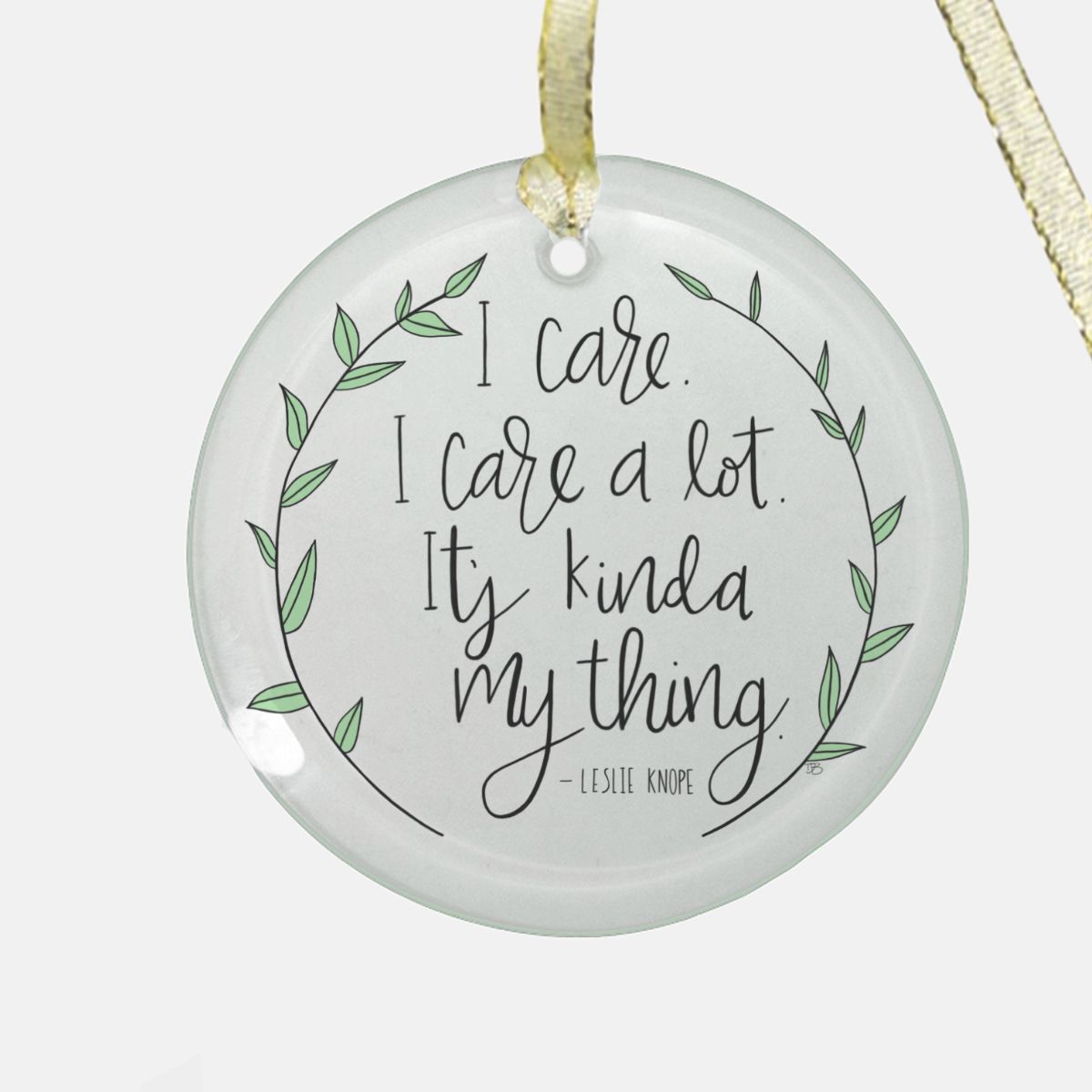 I Care. I Care A Lot. It's Kinda My Thing | Leslie Knope | Round Glass Christmas Ornament