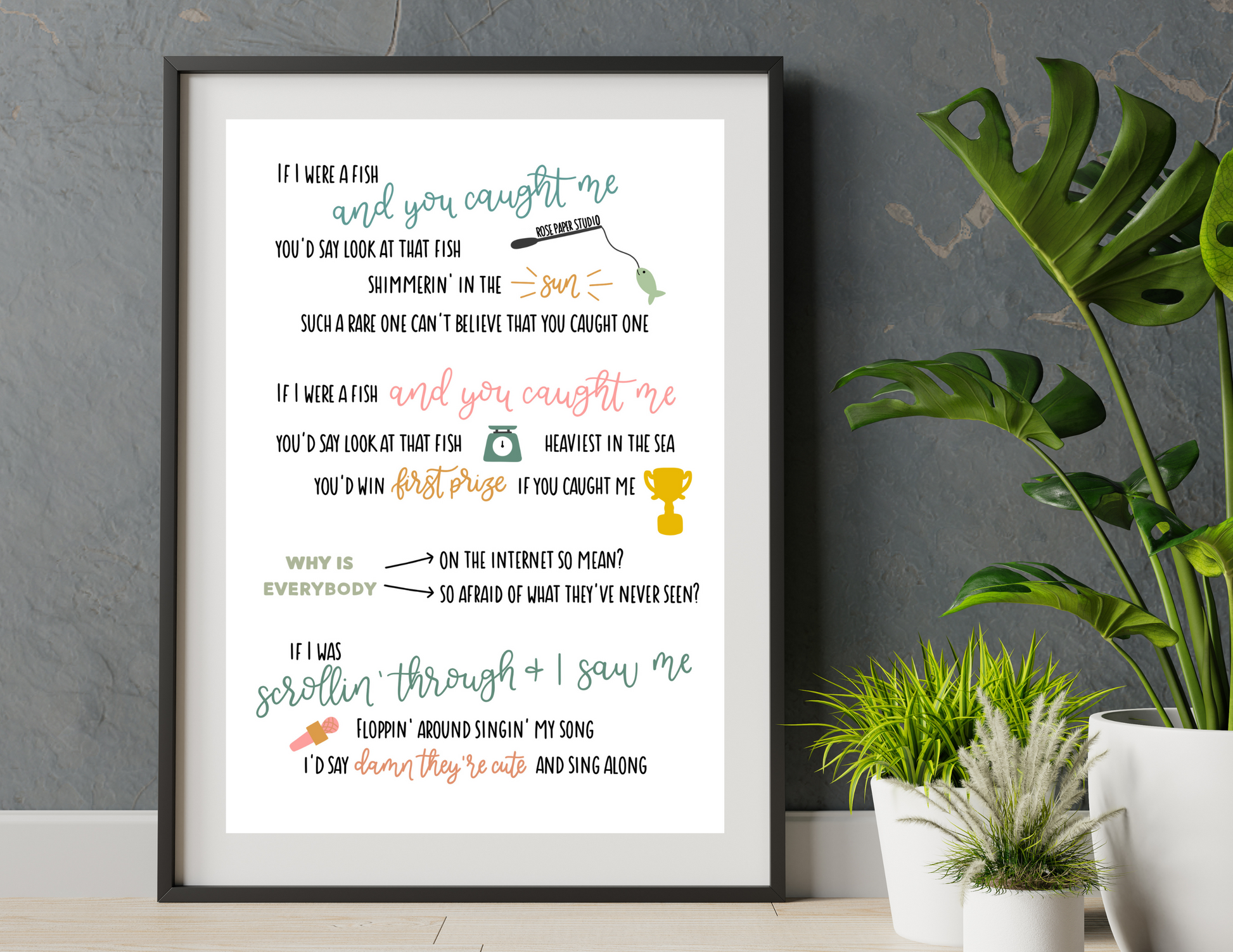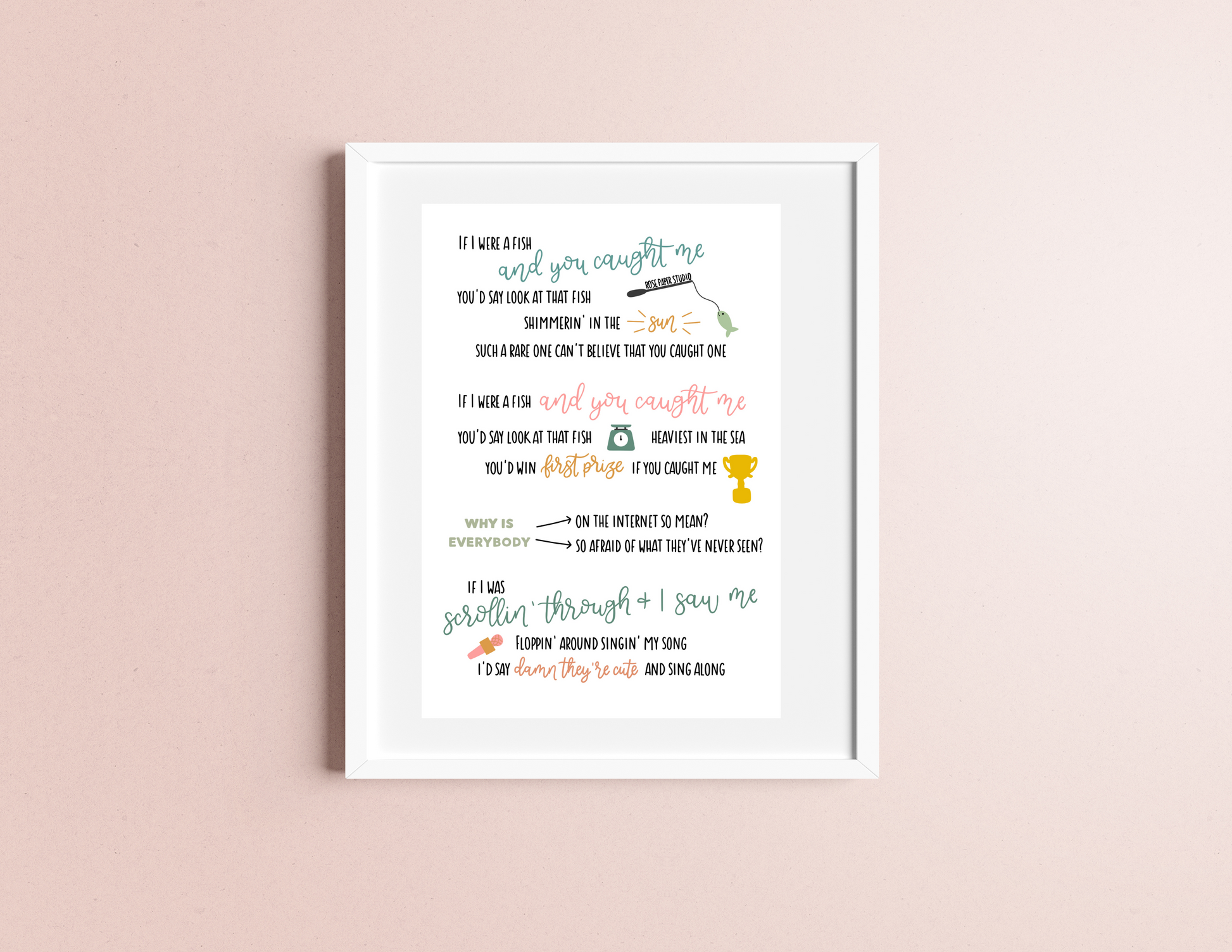 If I Were A Fish And You Caught Me | TikTok Viral Song | Modern Calligraphy Quote Art Print