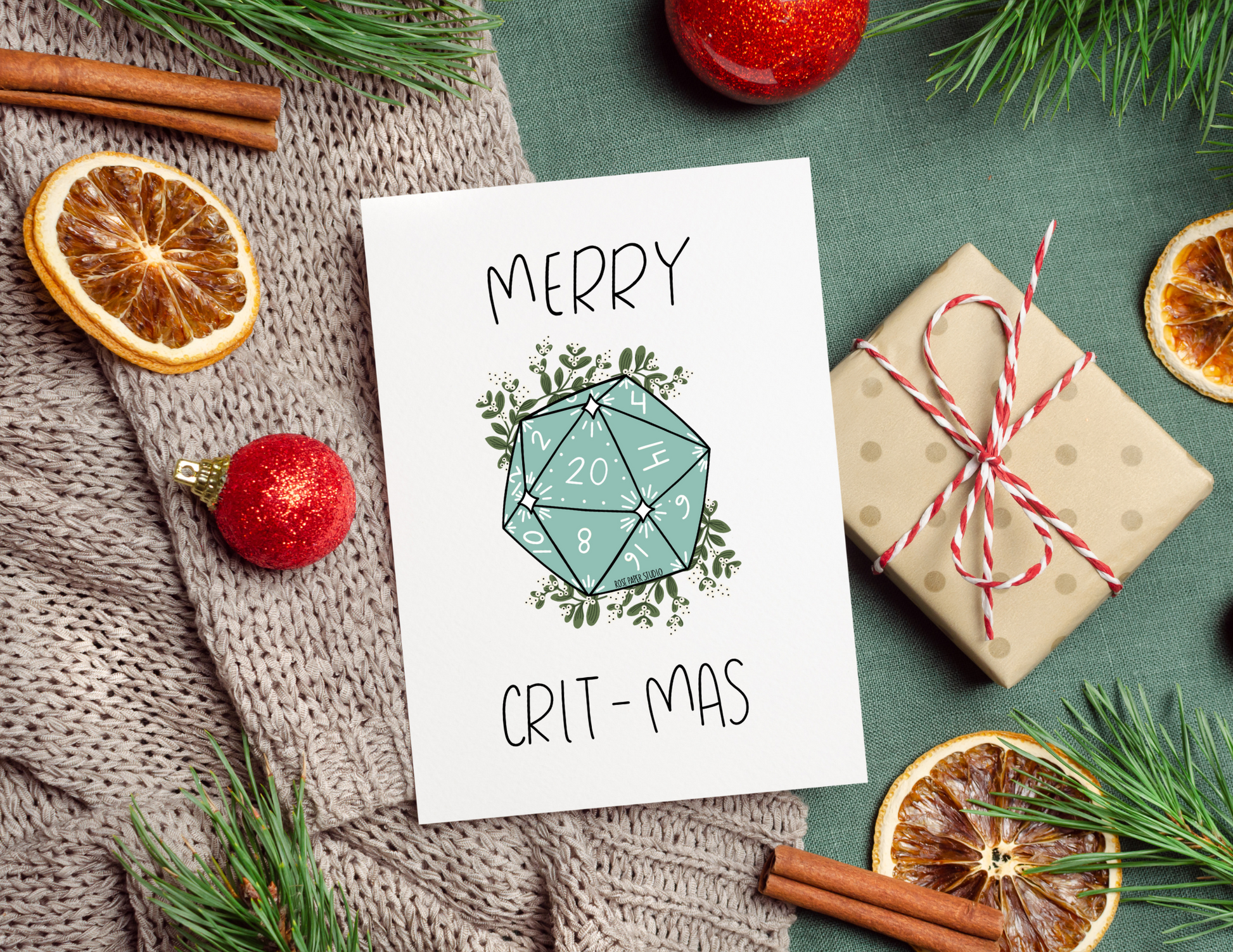Merry Crit-mas | Dungeons and Dragons Christmas Card | Blank Calligraphy Greeting Card