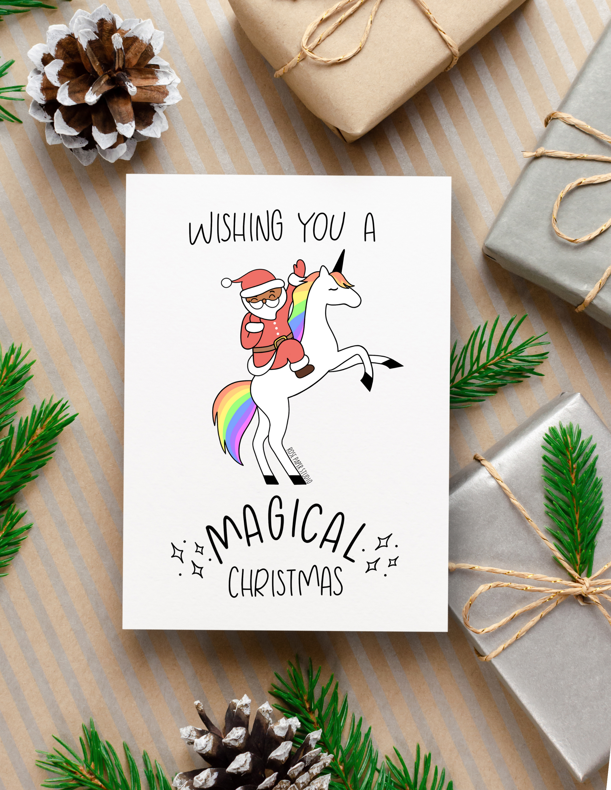 Pride Santa | Wishing You A Magical Christmas | Blank Calligraphy Greeting Card