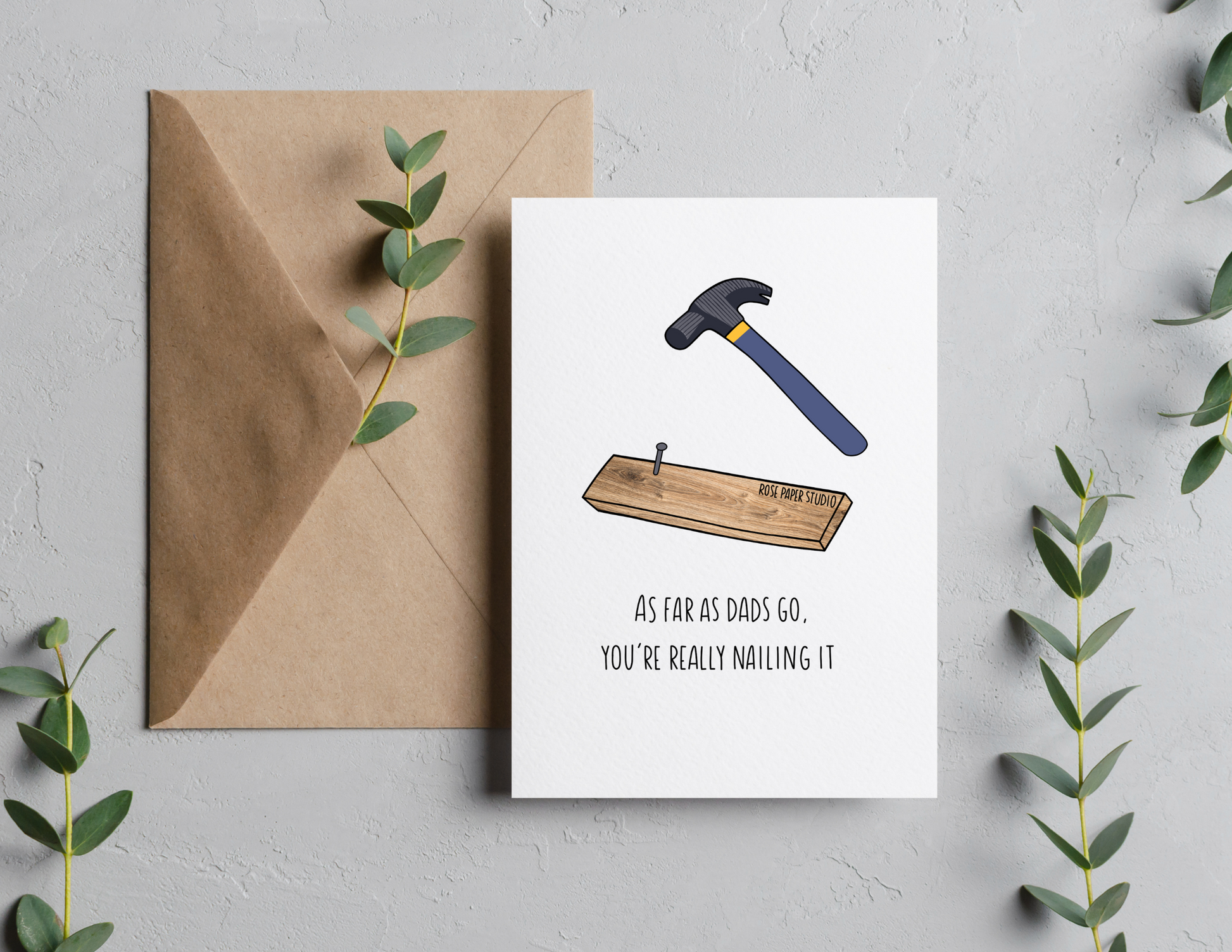 As Far As Dads Go, You're Really Nailing It | Blank Modern Calligraphy Greeting Card | Father's Day Gift | Punny Father's Day Cards