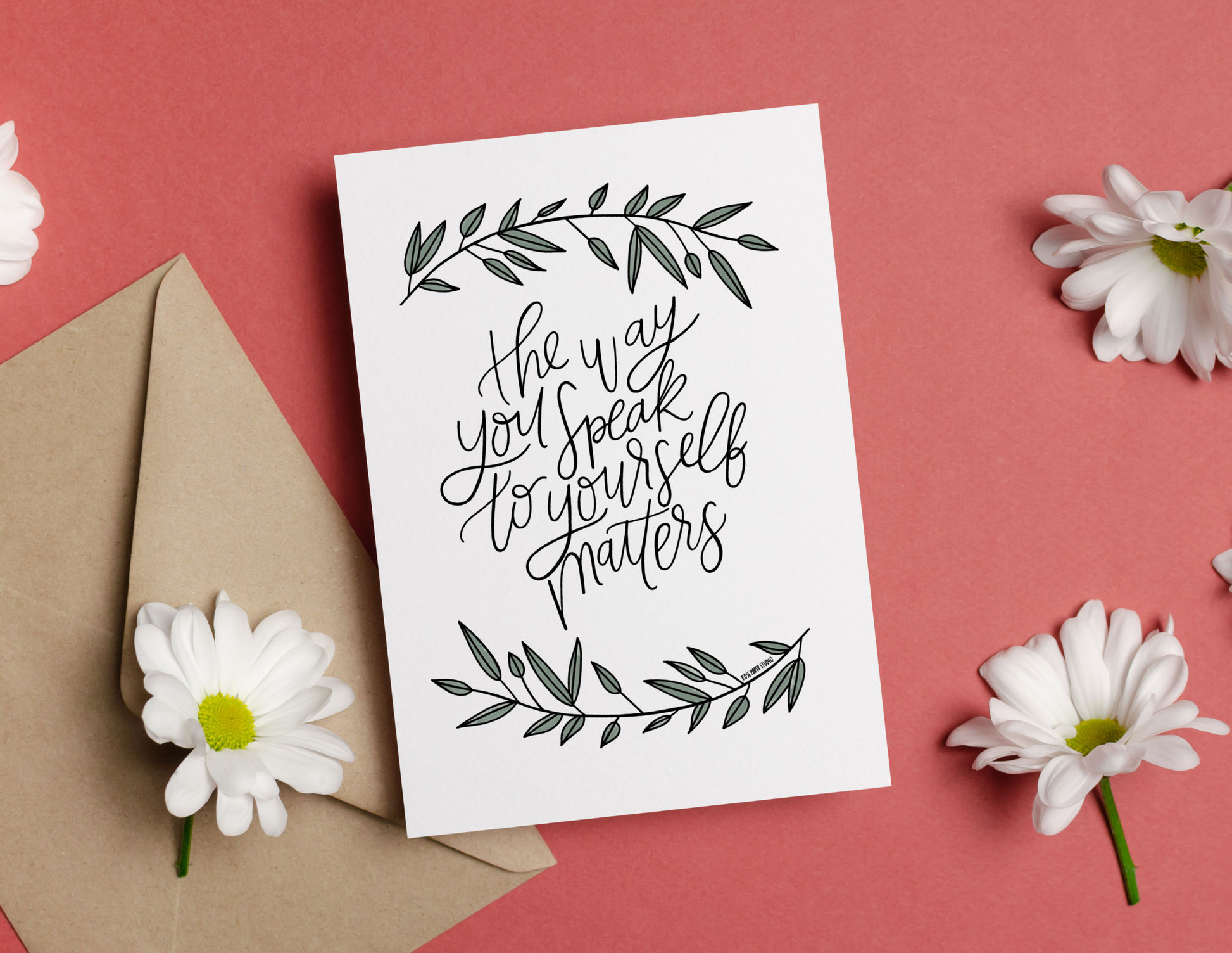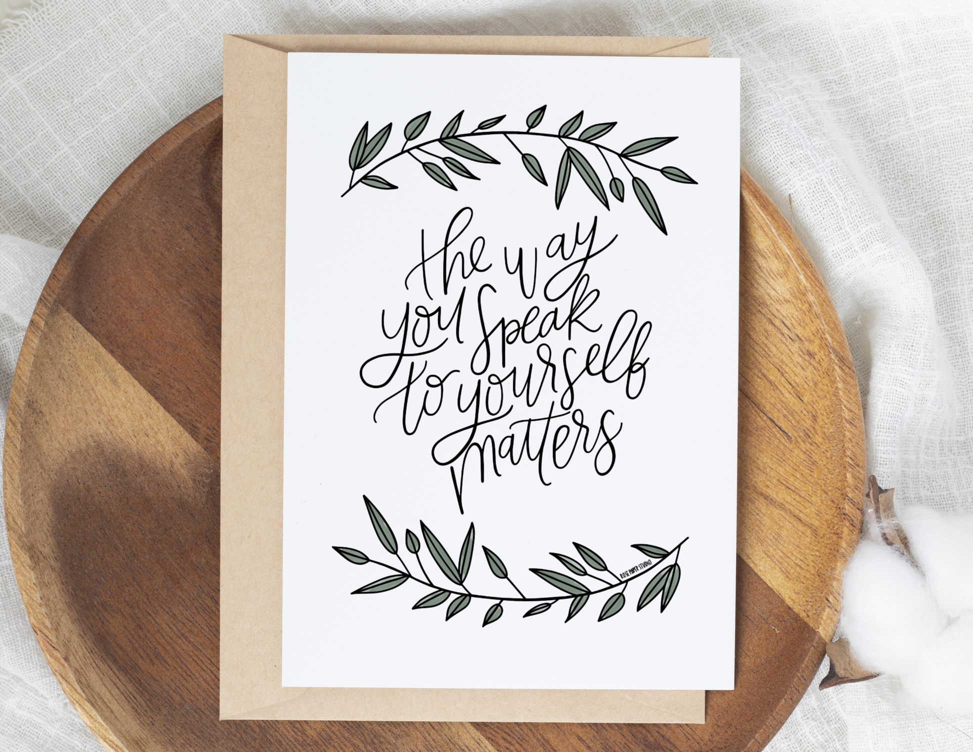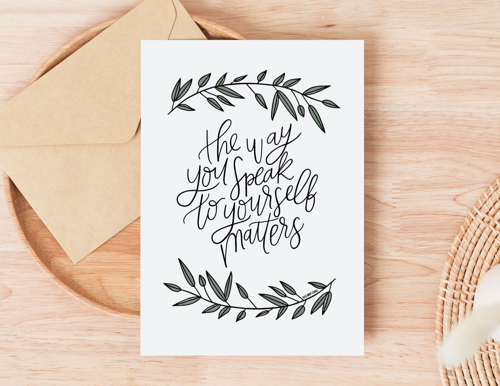 The Way You Speak to Yourself Matters | Blank Calligraphy Greeting Card