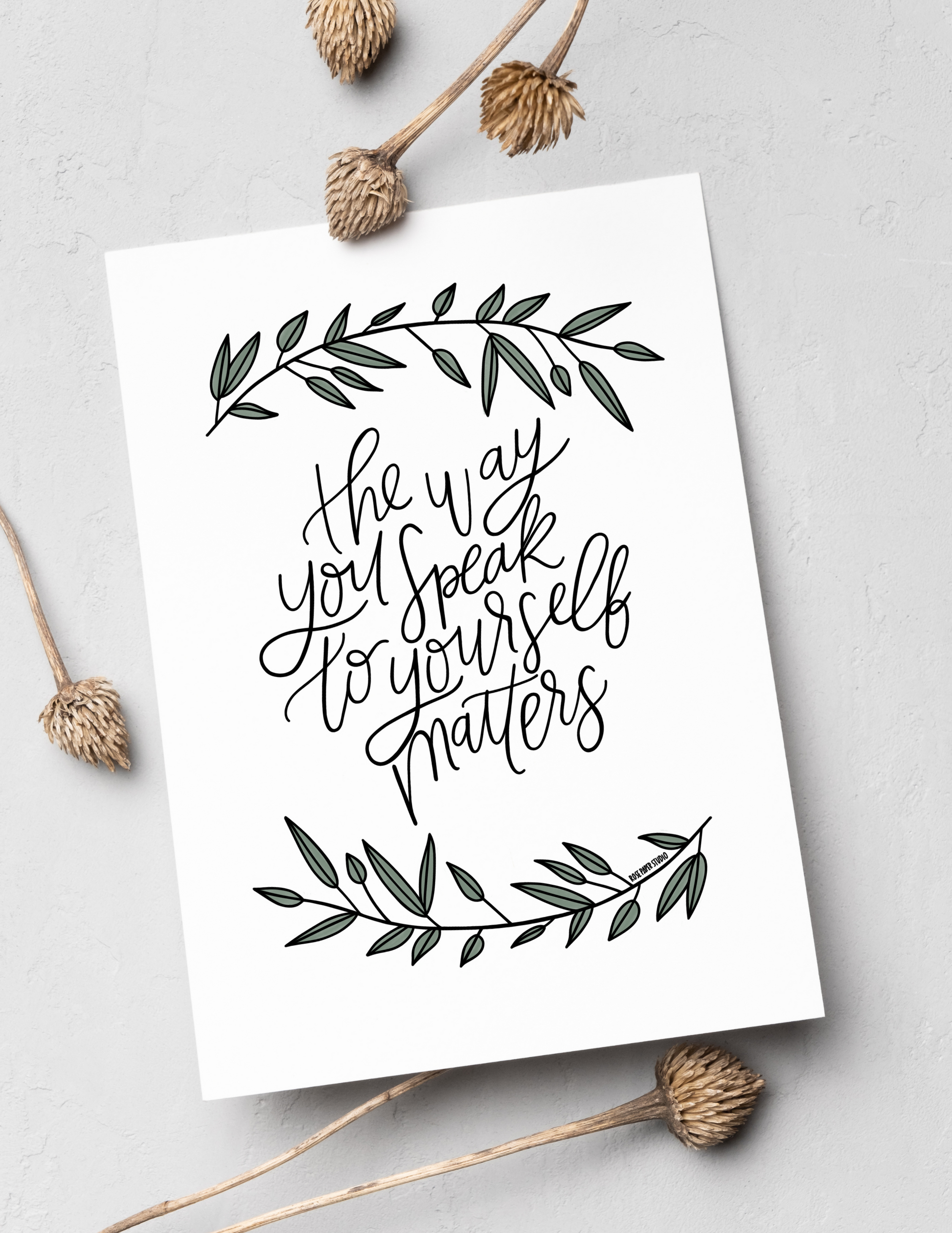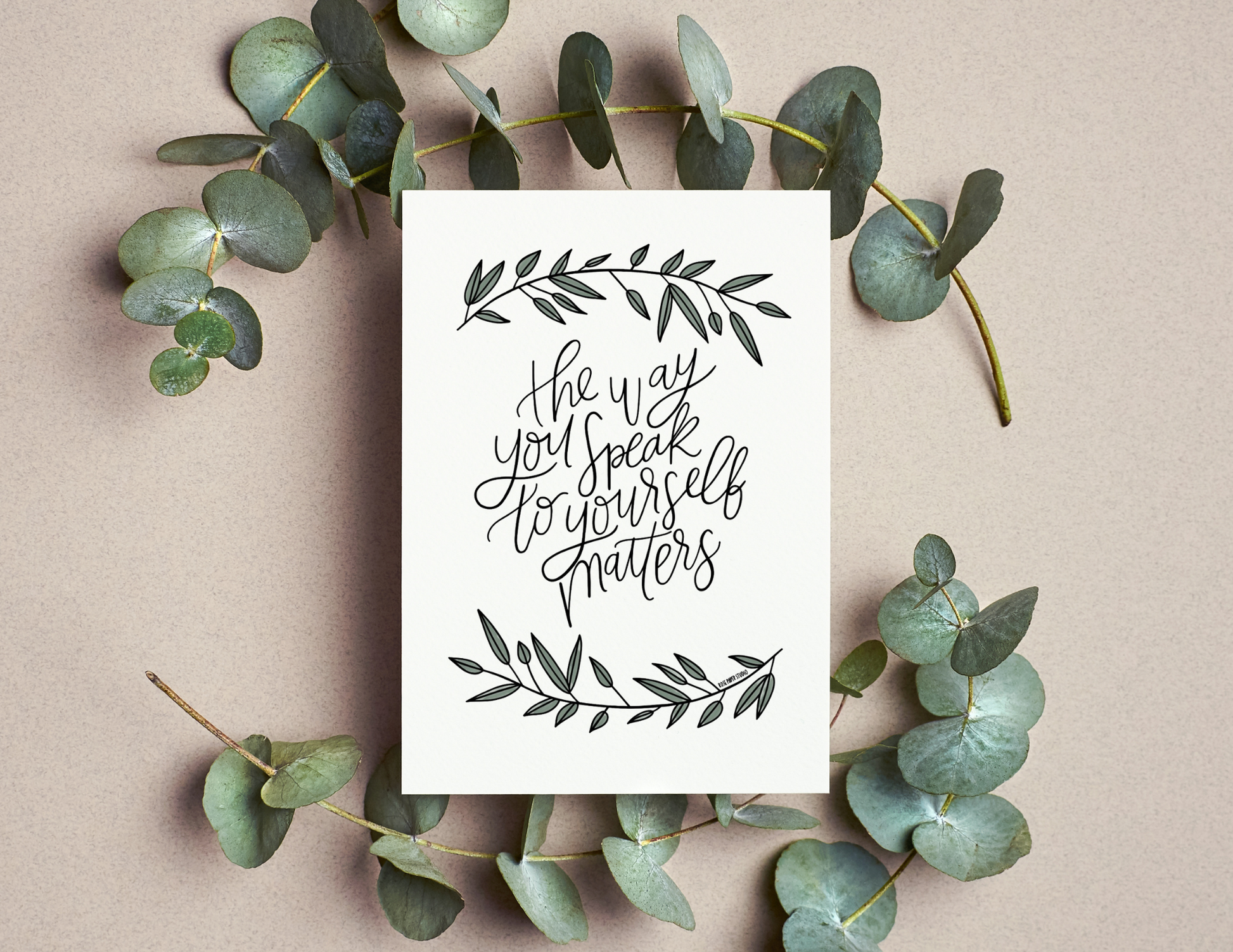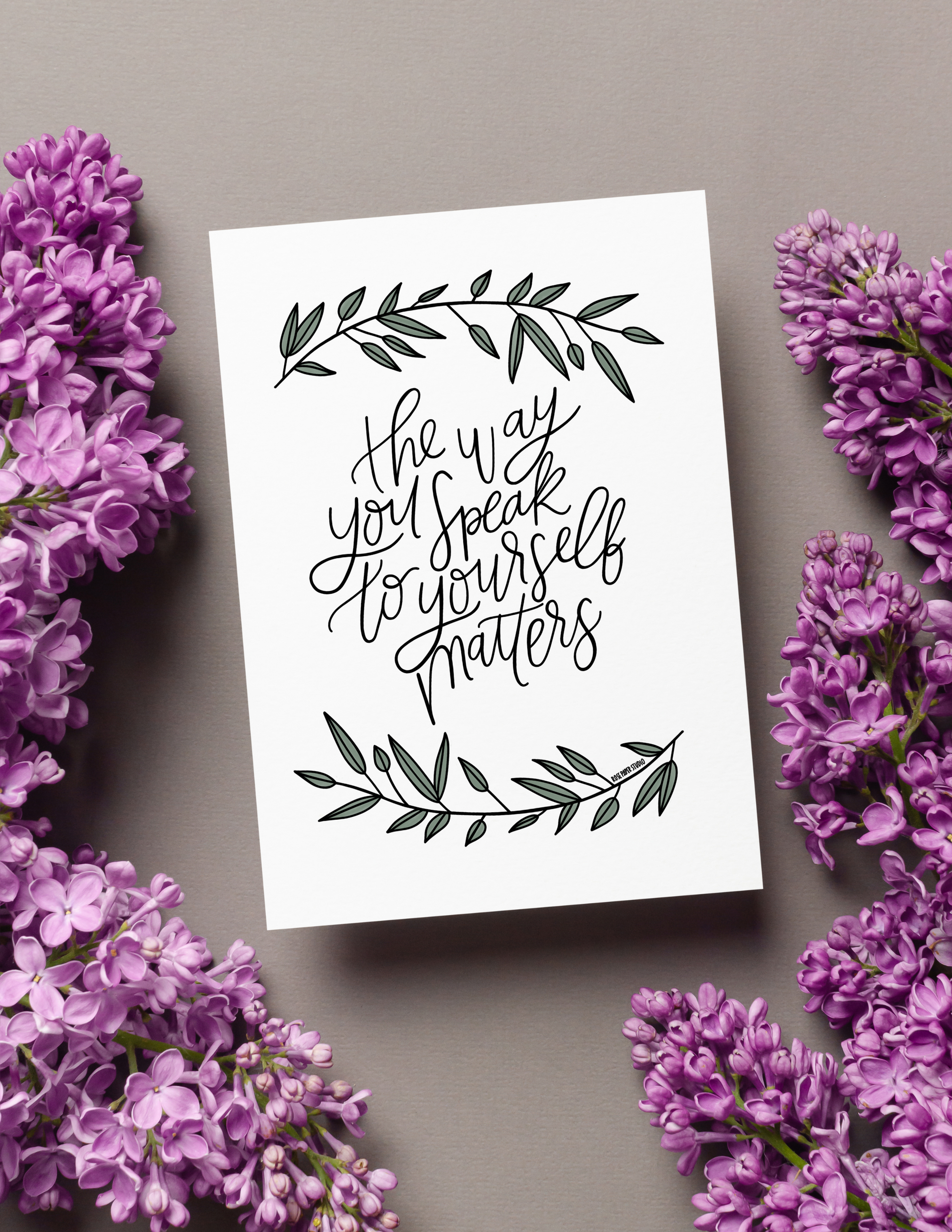 The Way You Speak to Yourself Matters | Blank Calligraphy Greeting Card