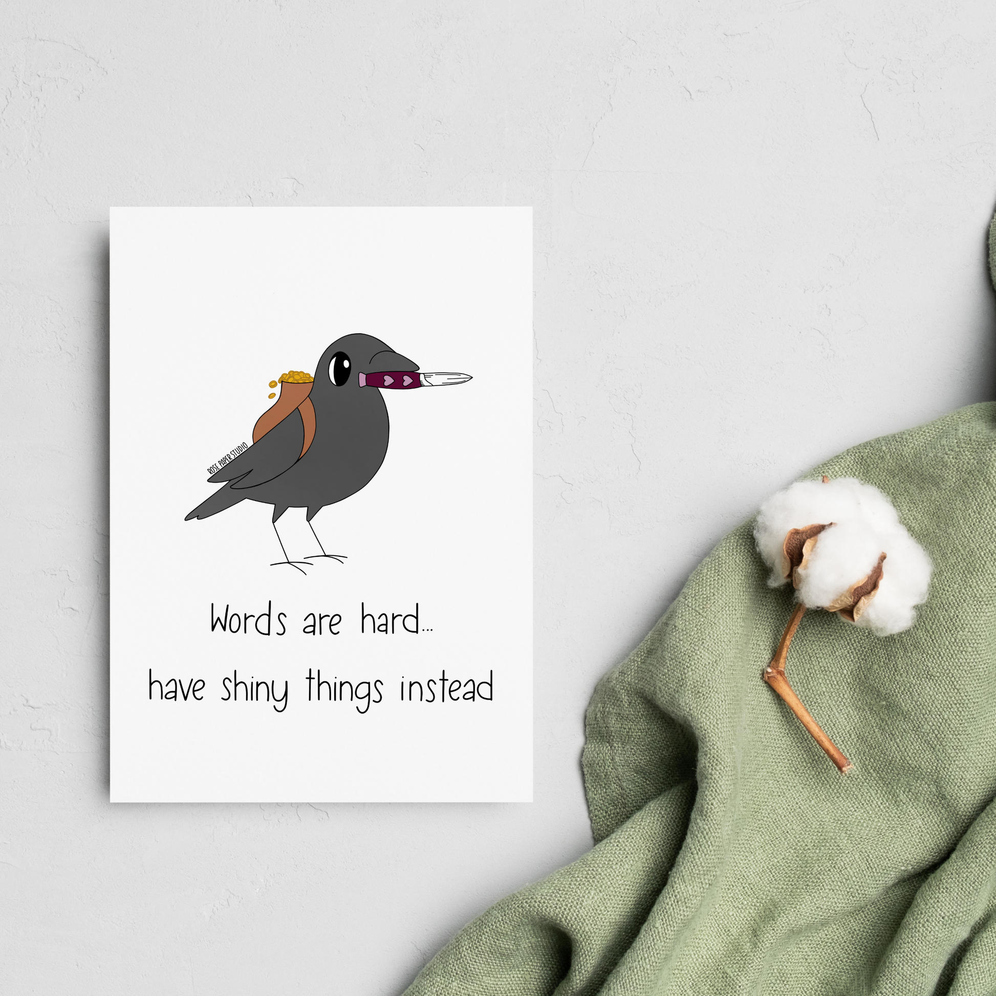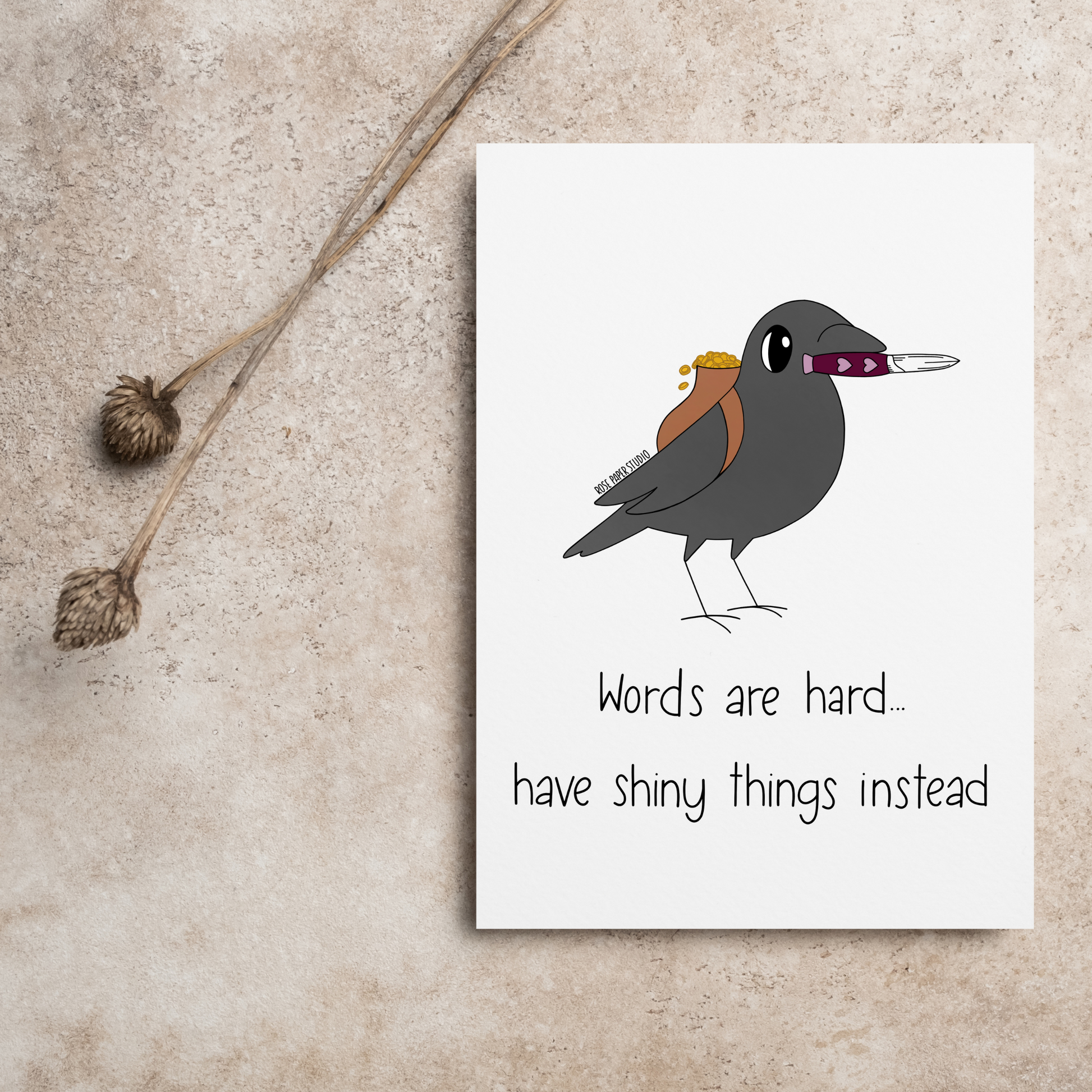 Words Are Hard...Have Shiny Things Instead Card | Valentine's Day Card | Anniversary Gift | Hand Drawn Greeting Card