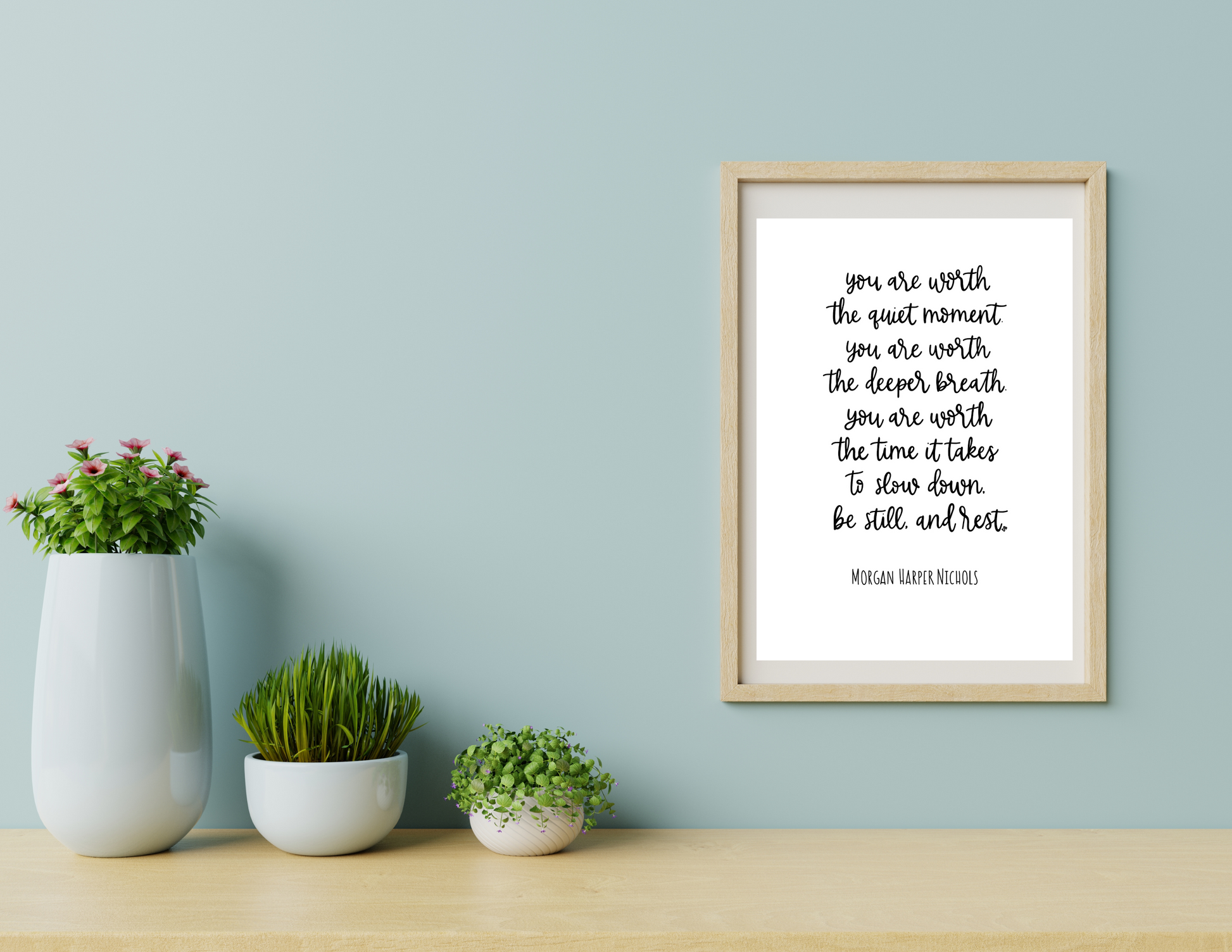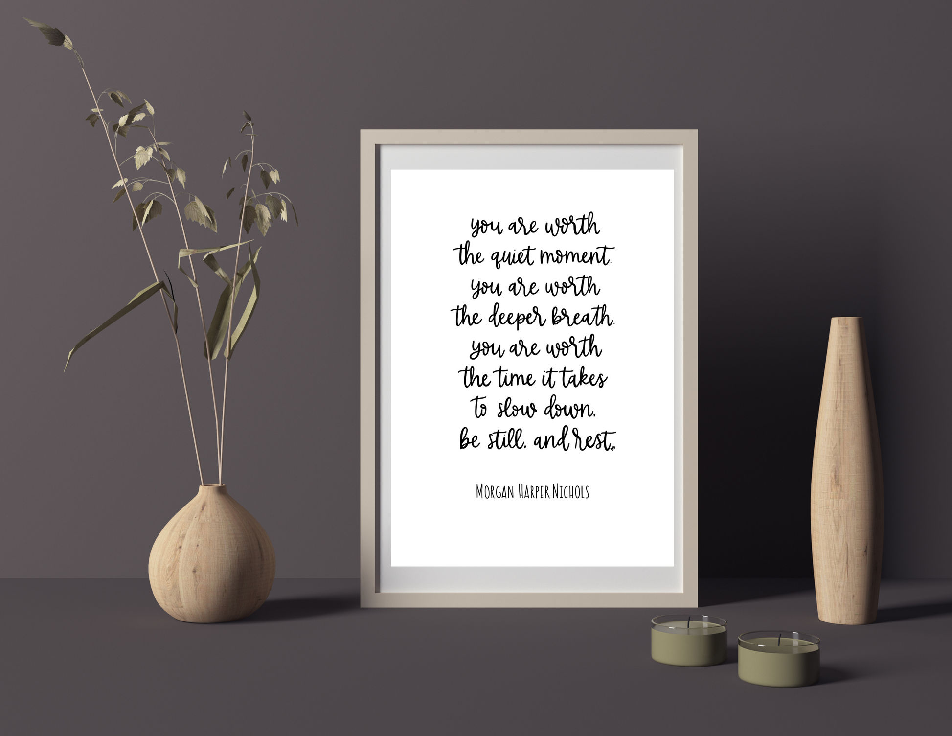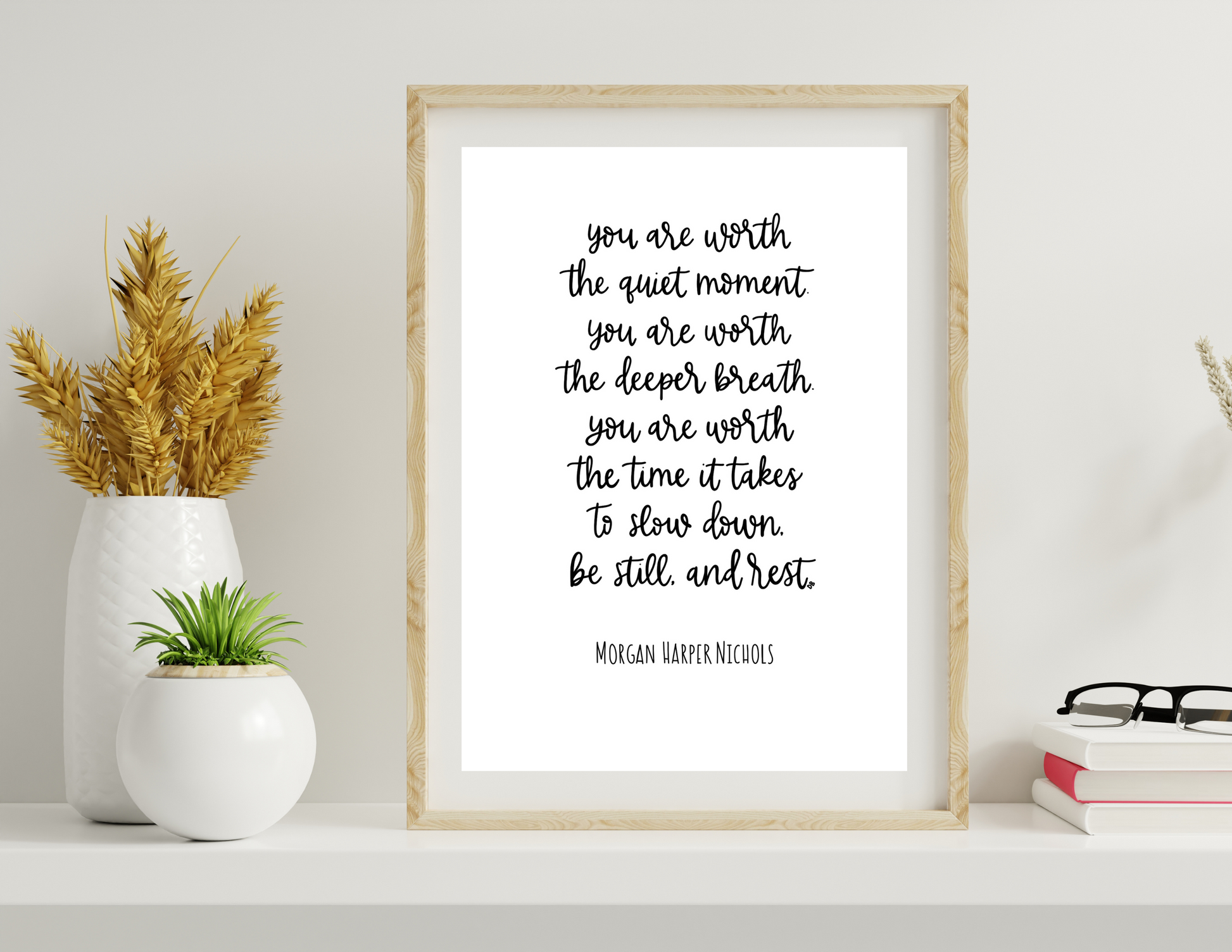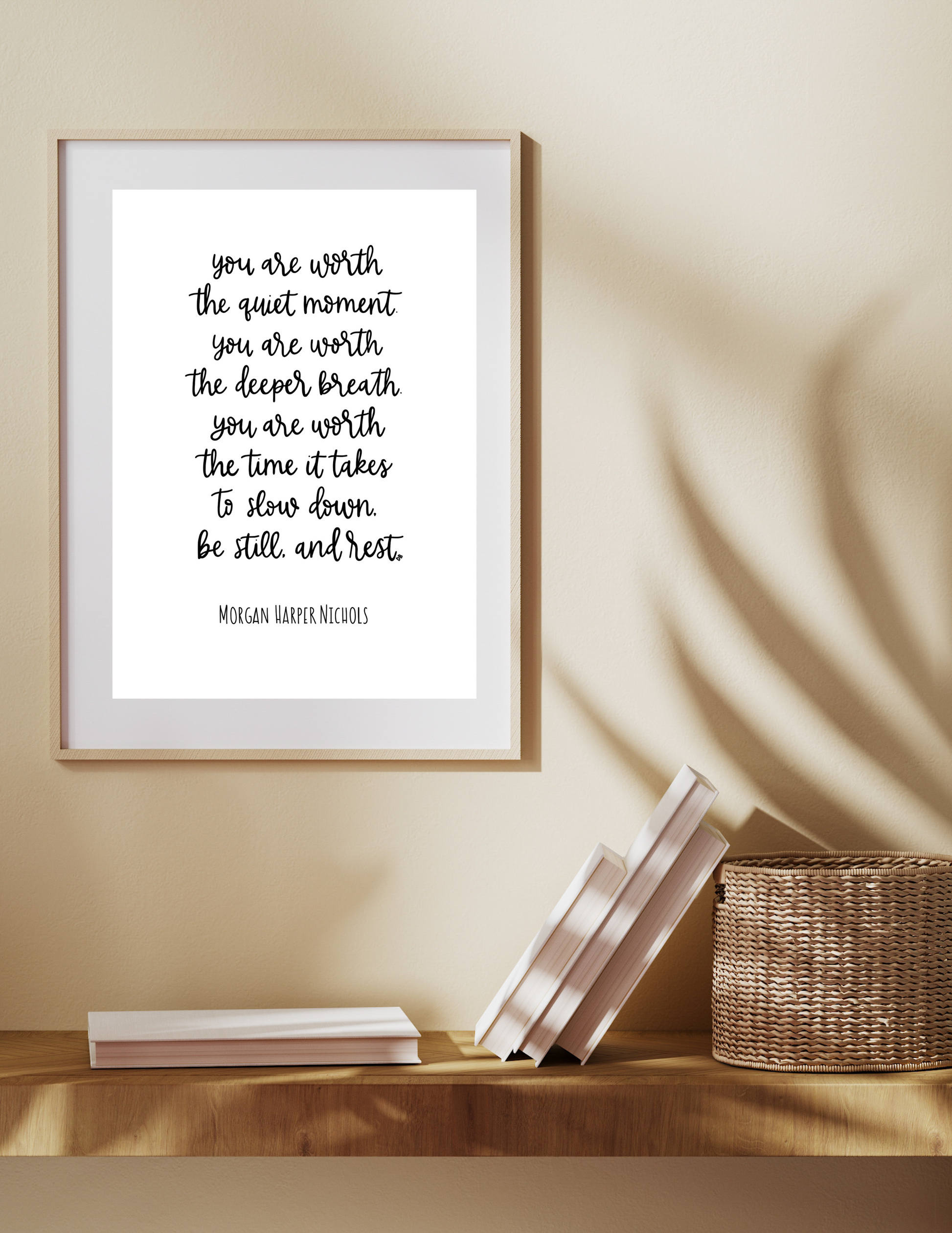 You Are Worth The Quiet Moment | Modern Calligraphy Quote Art Print