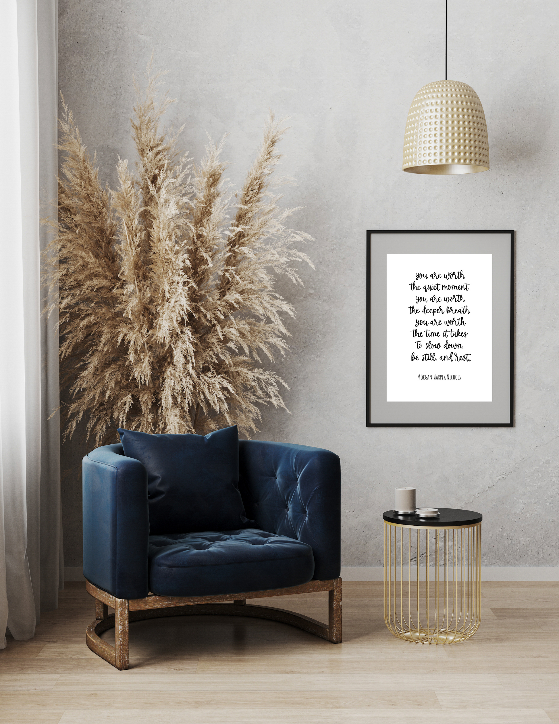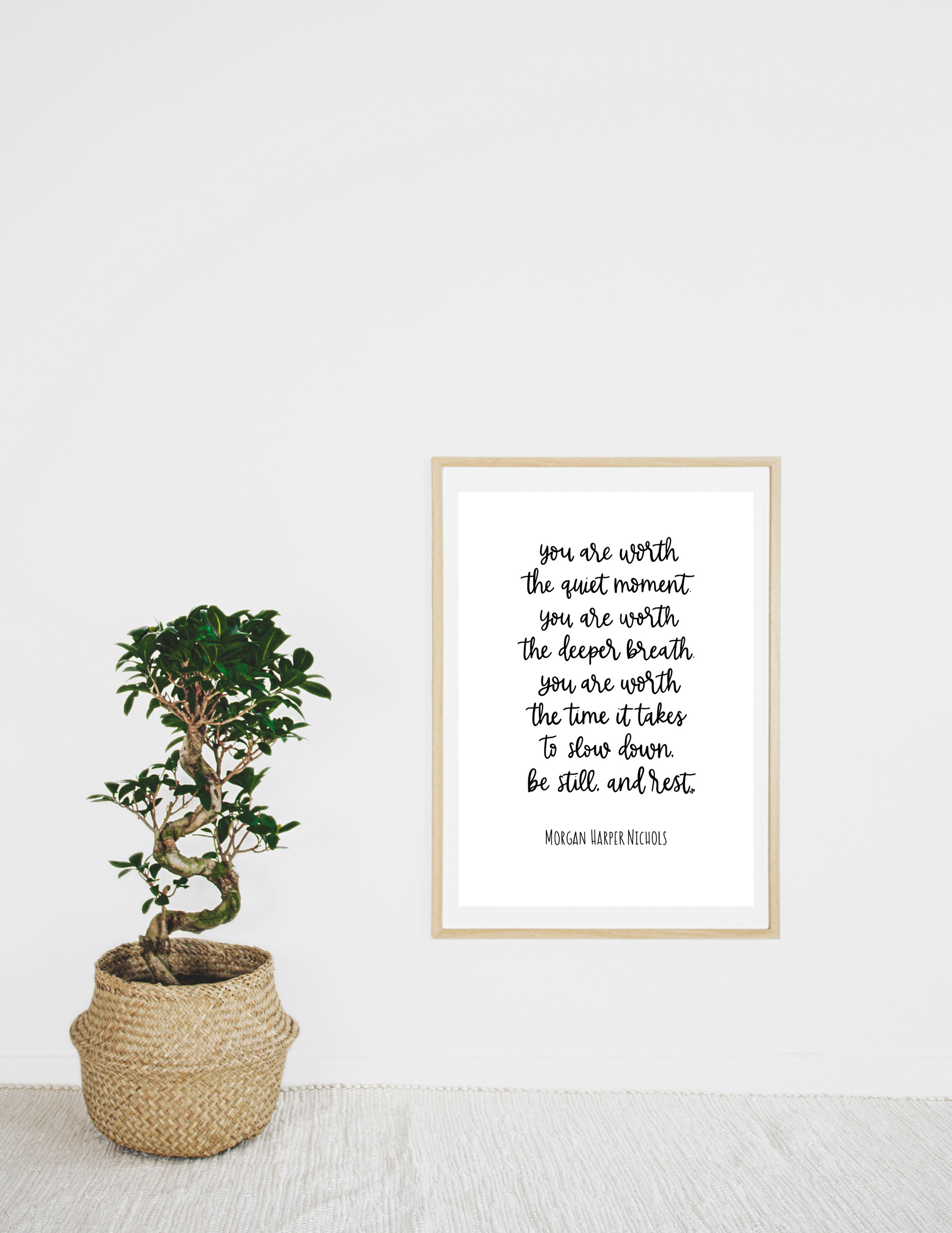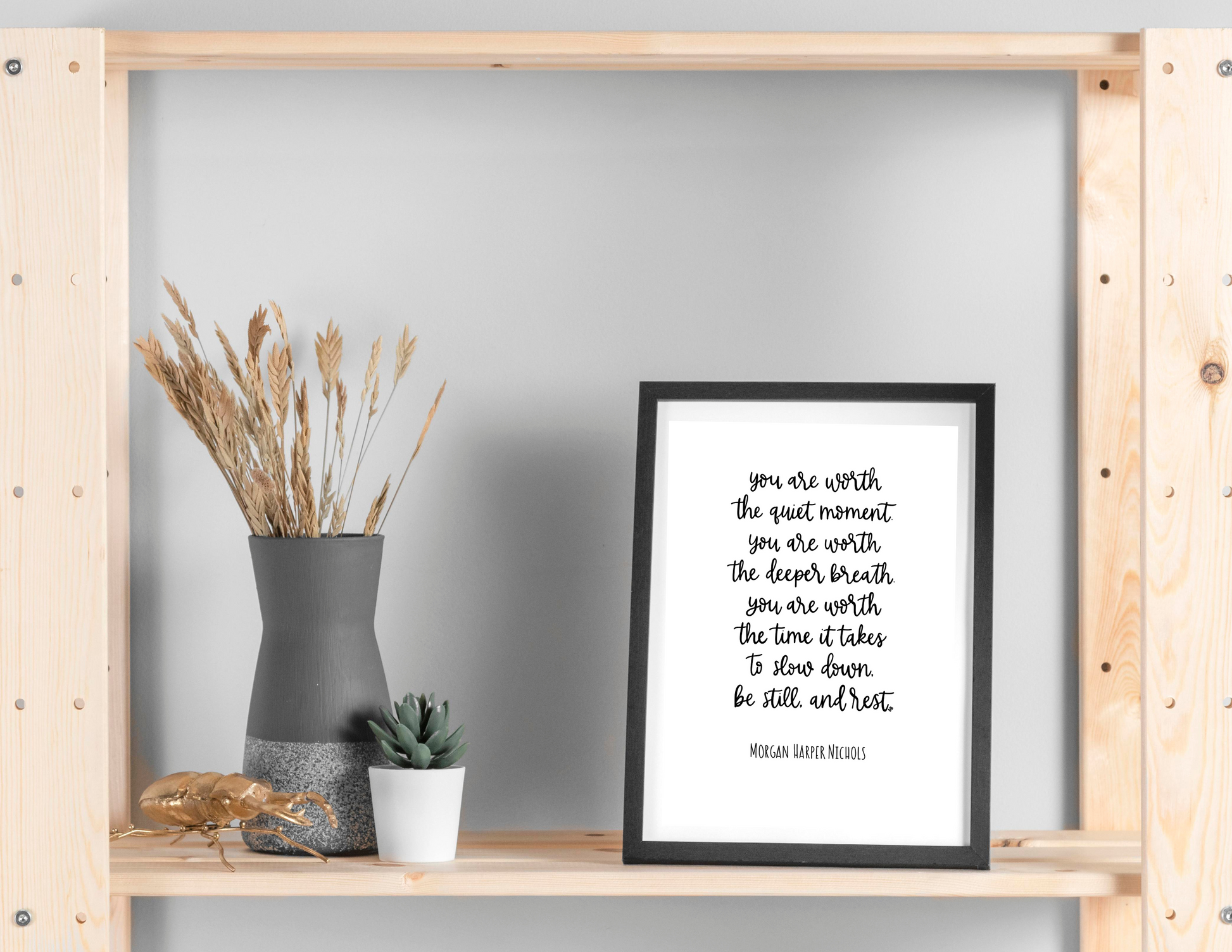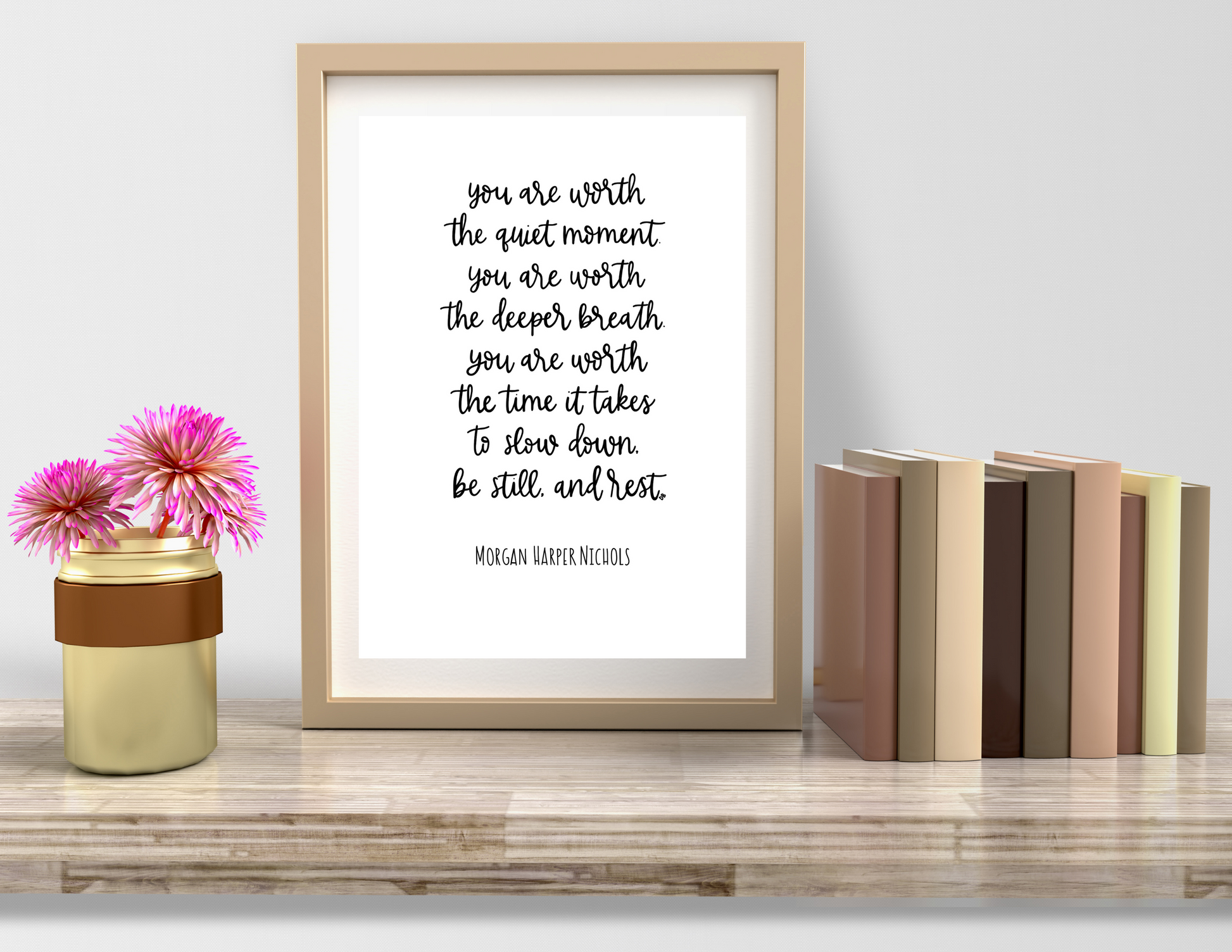 You Are Worth The Quiet Moment | Modern Calligraphy Quote Art Print