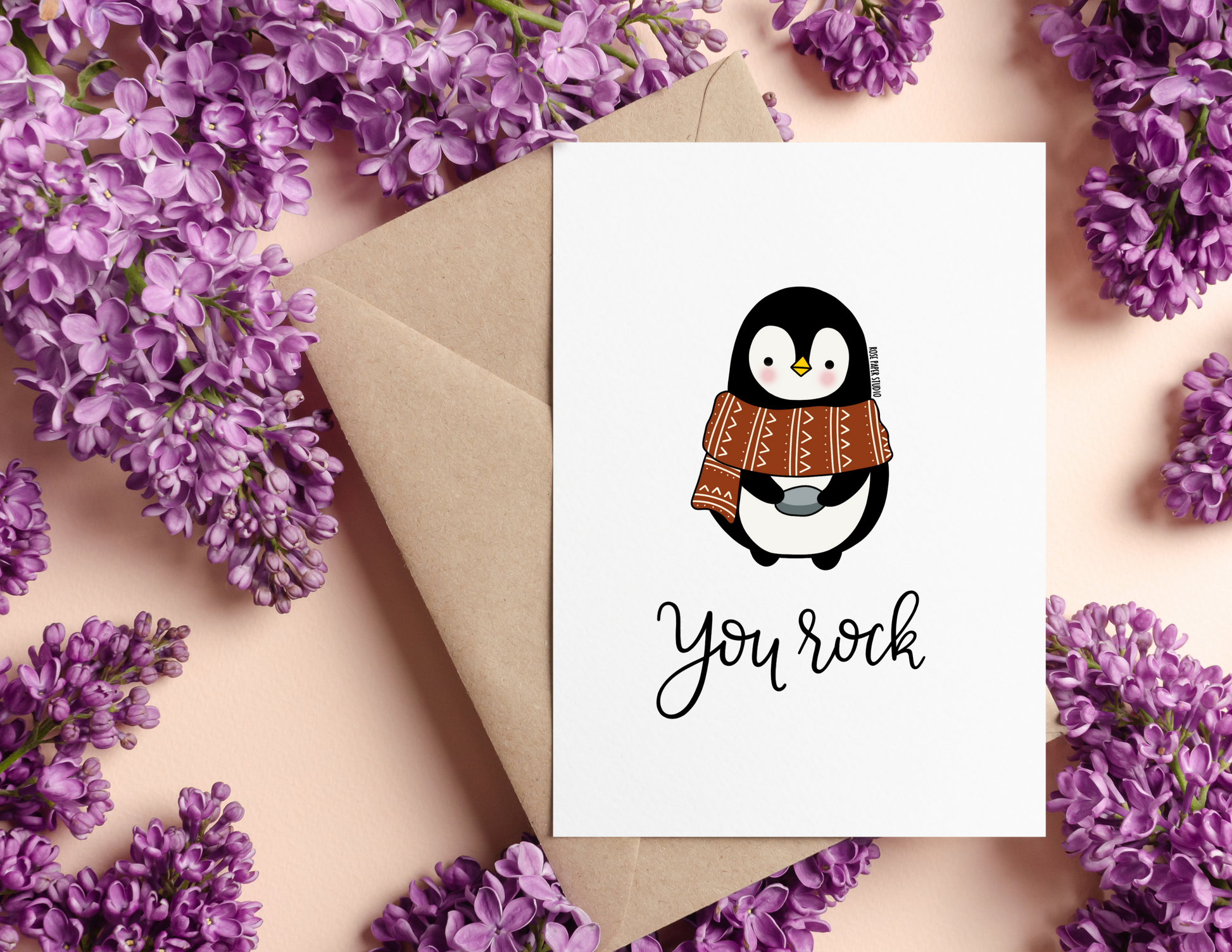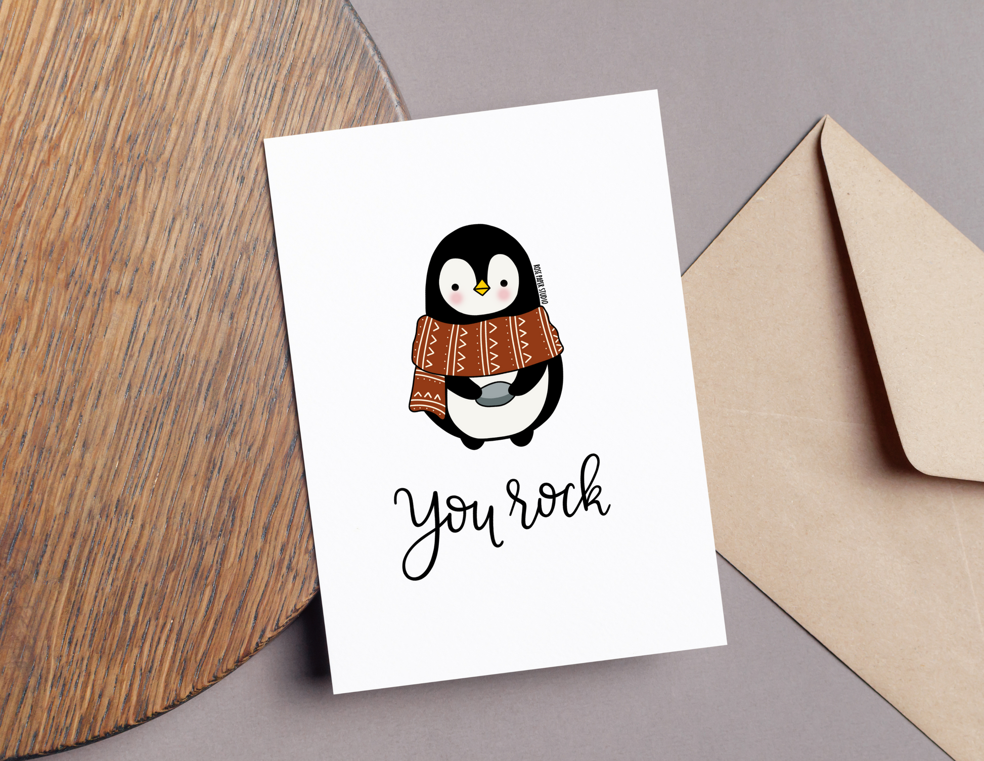 You Rock | Bernard the Penguin | Blank Modern Calligraphy Greeting Card